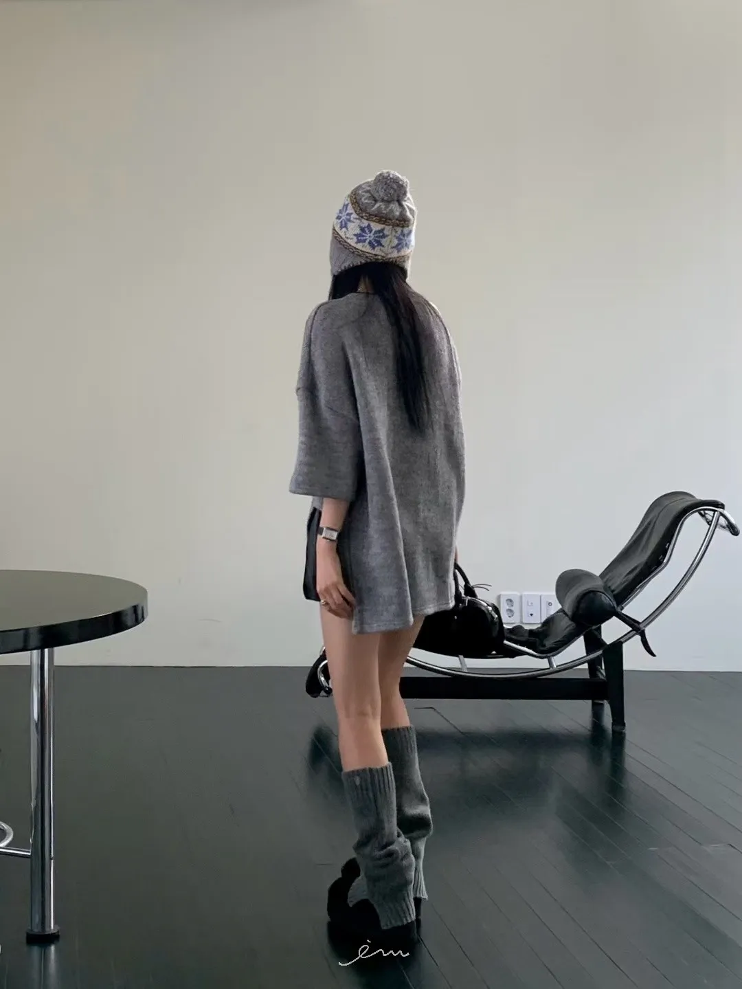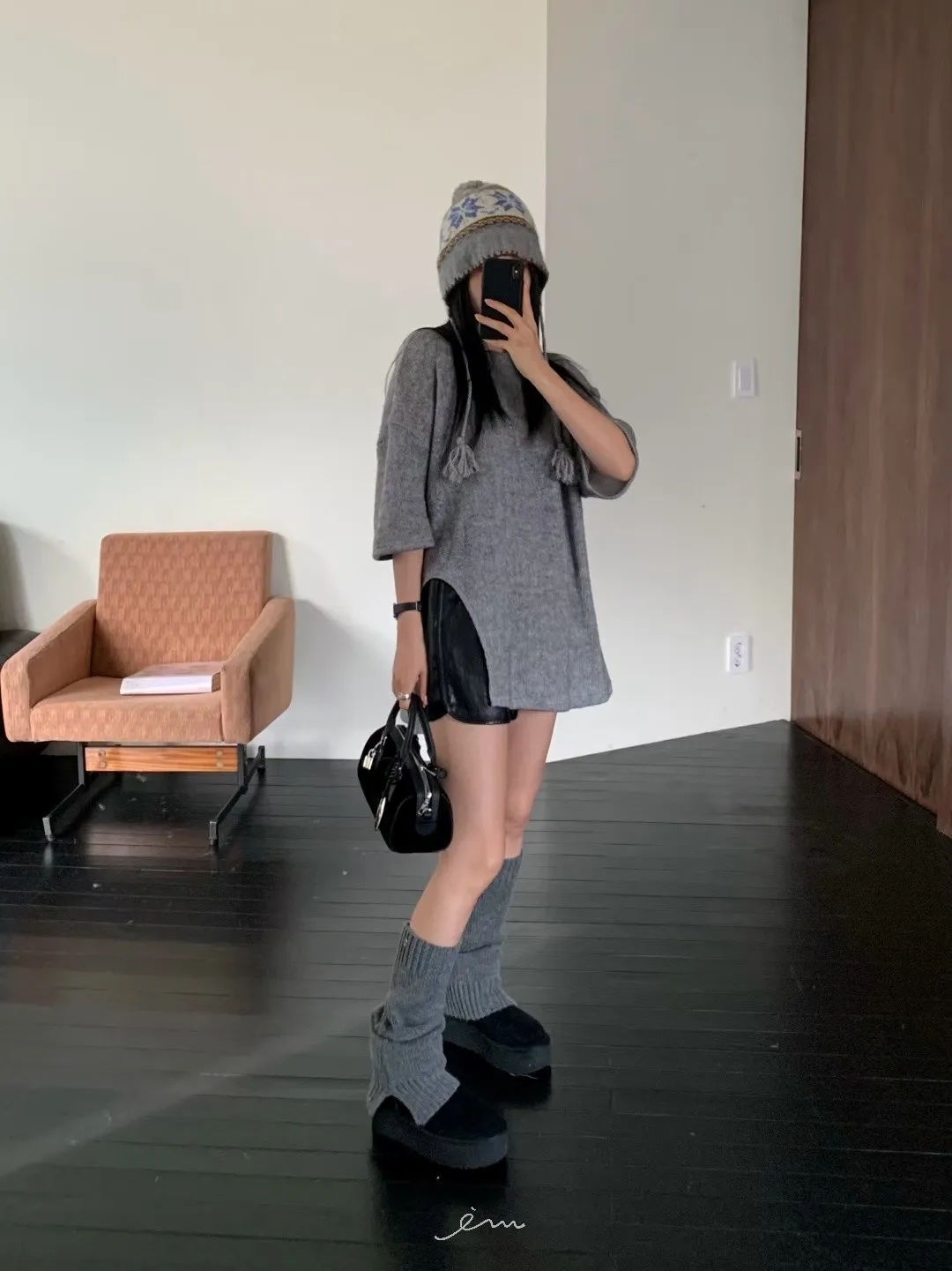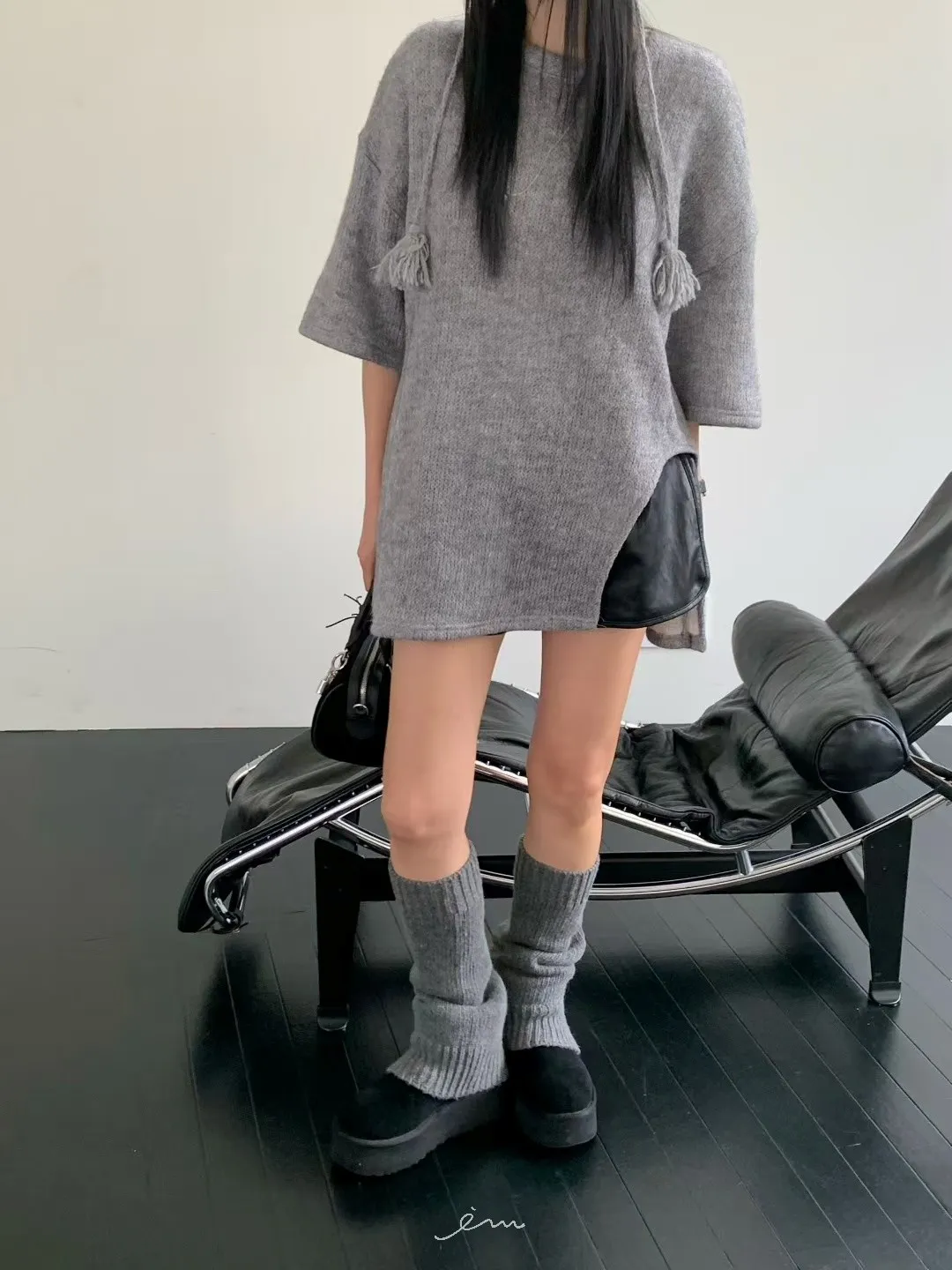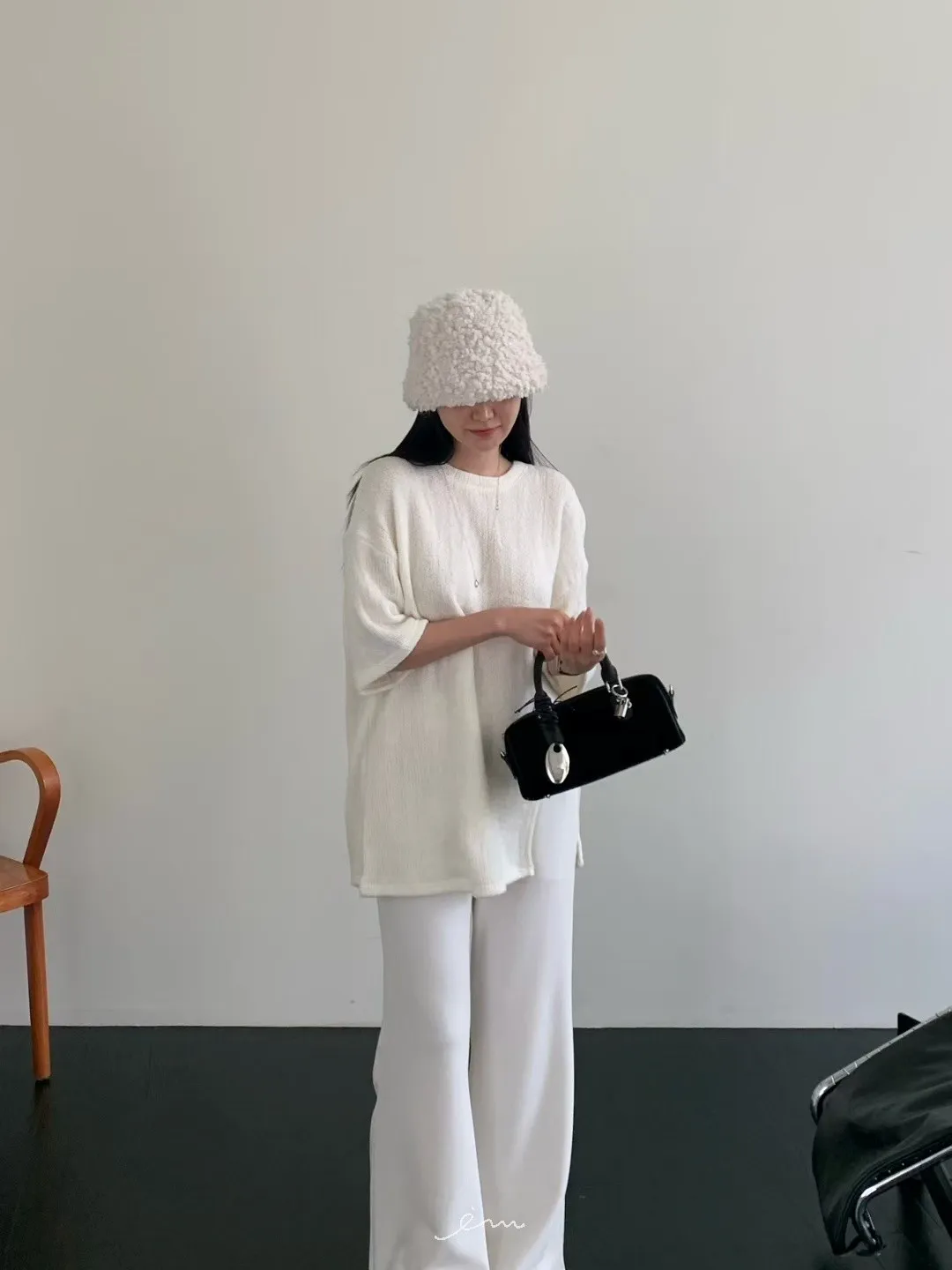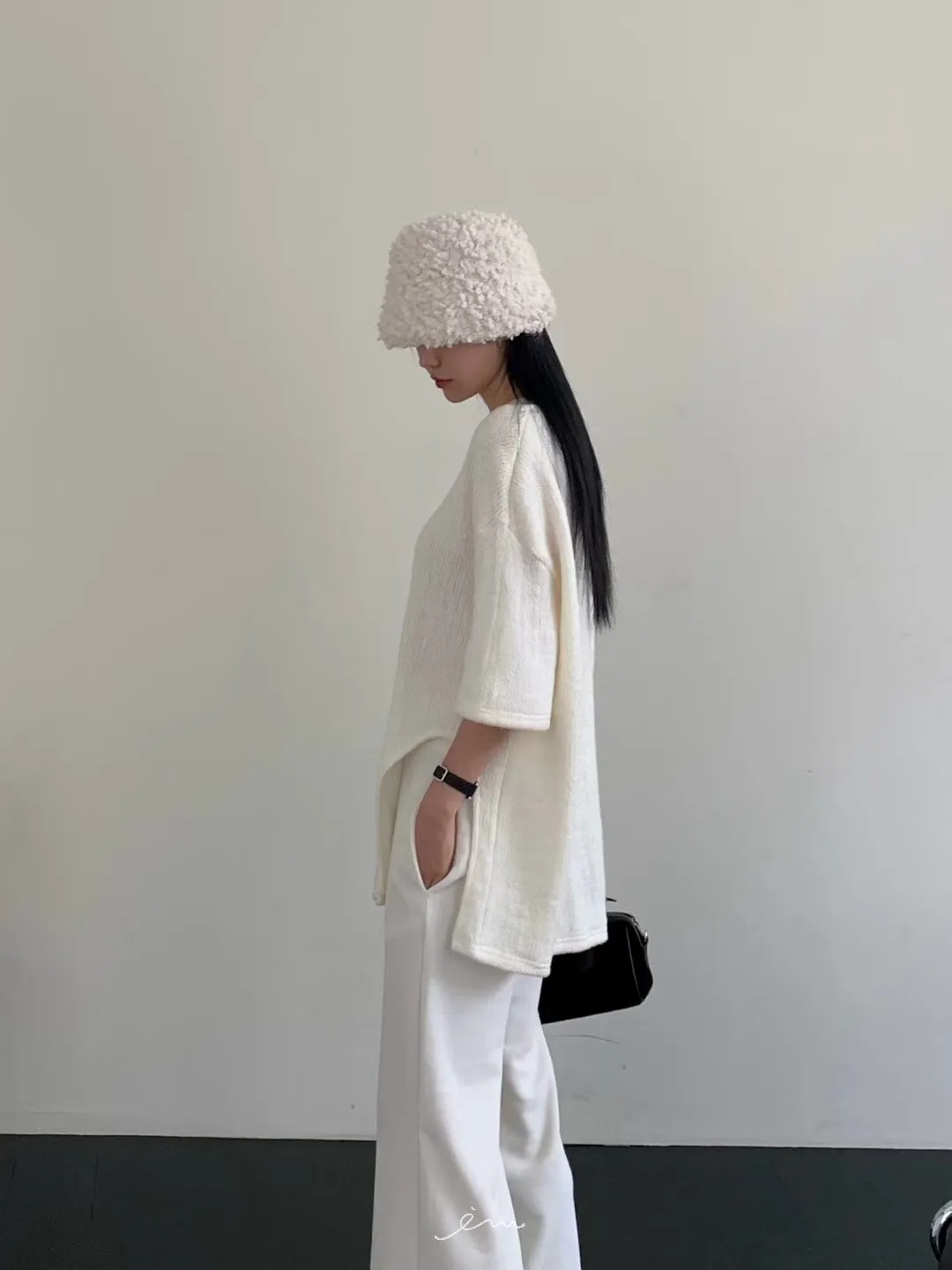 HO單邊開岔圈圈紋路素T(羊毛10%)(灰斷)