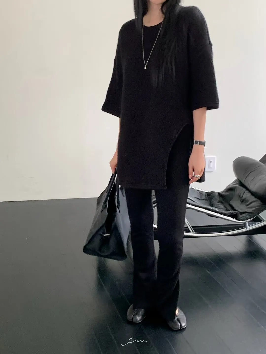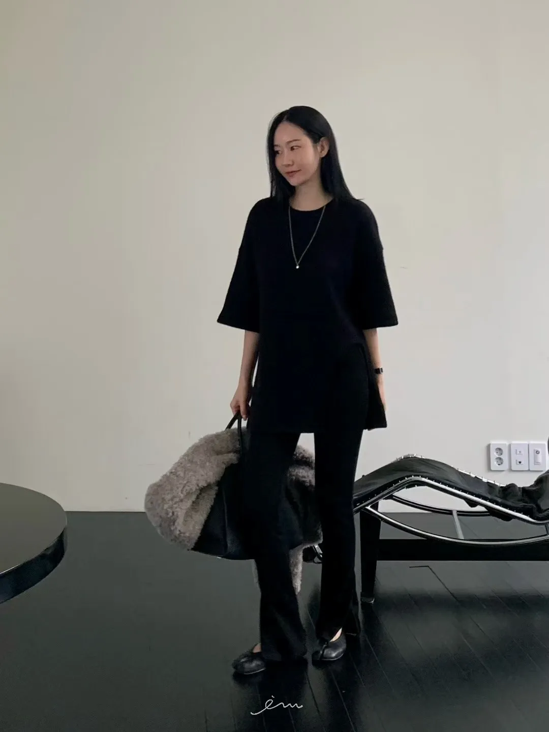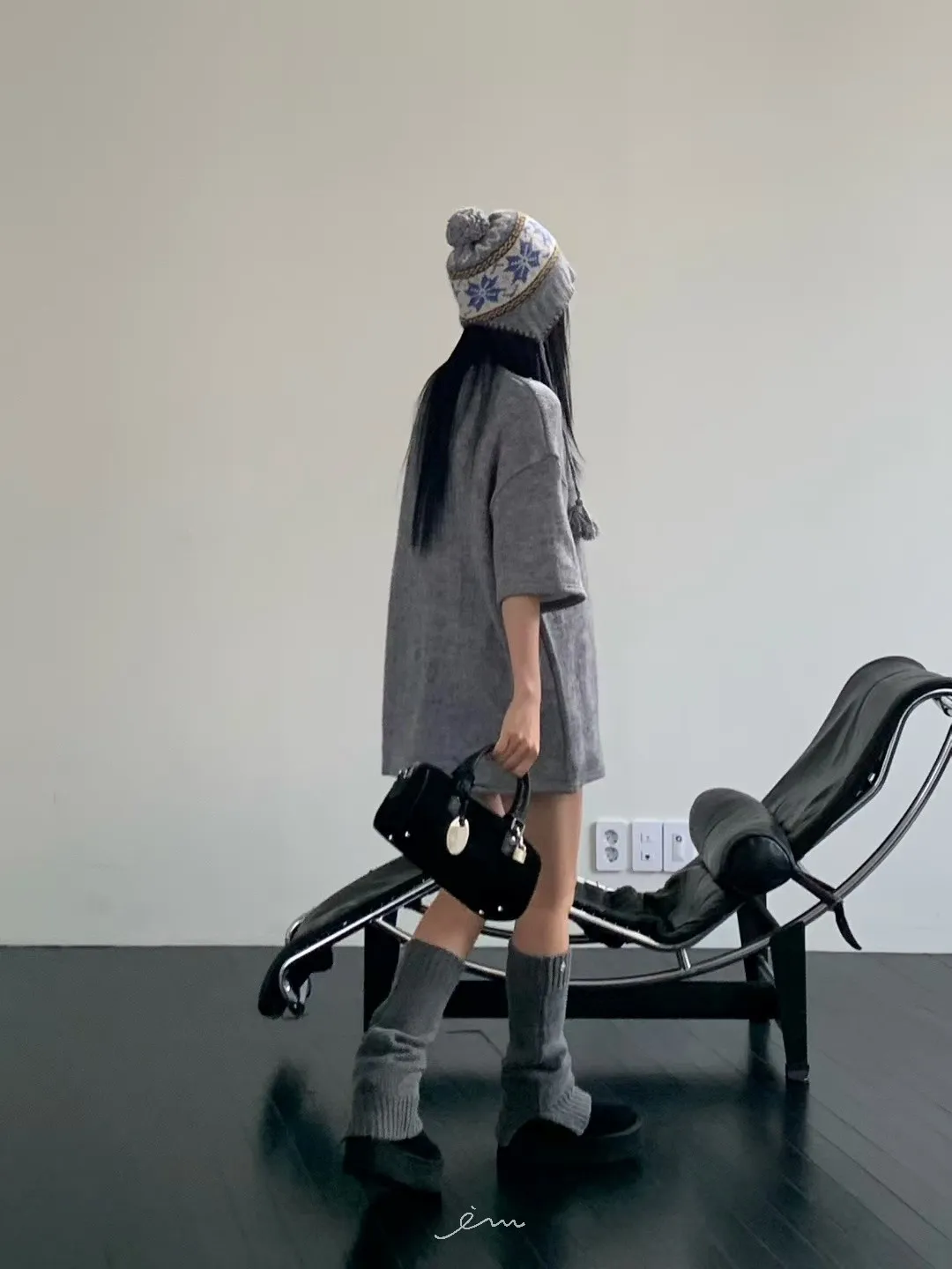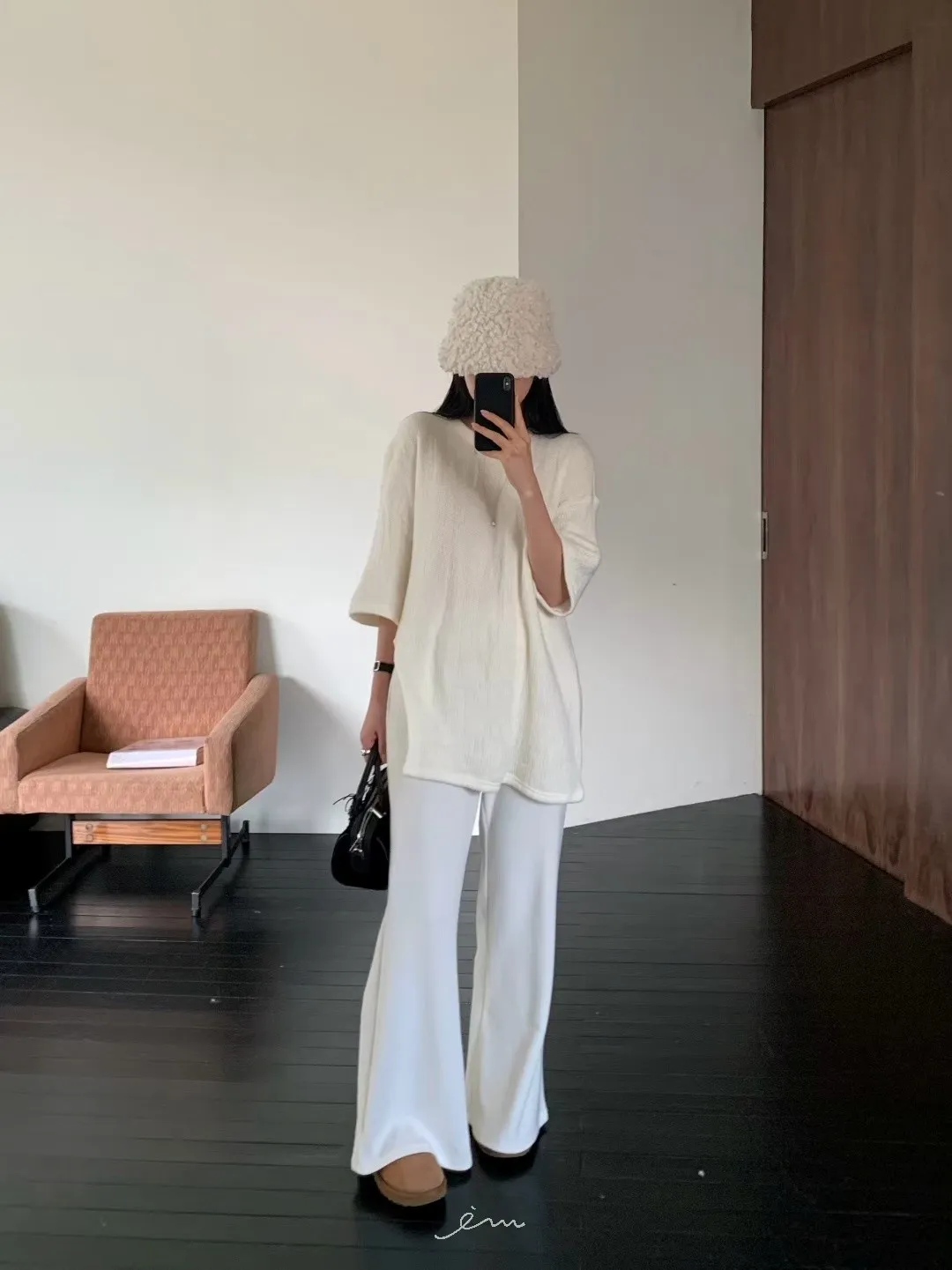 HO單邊開岔圈圈紋路素T(羊毛10%)(灰斷)