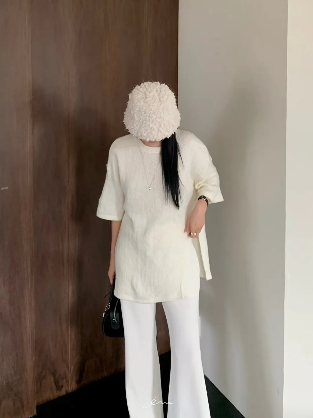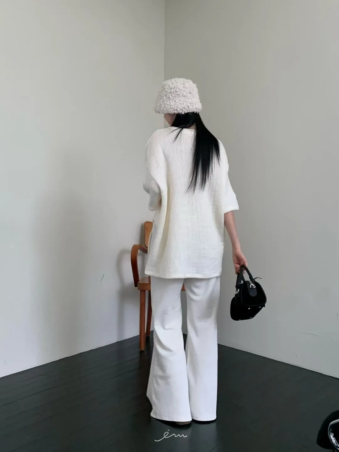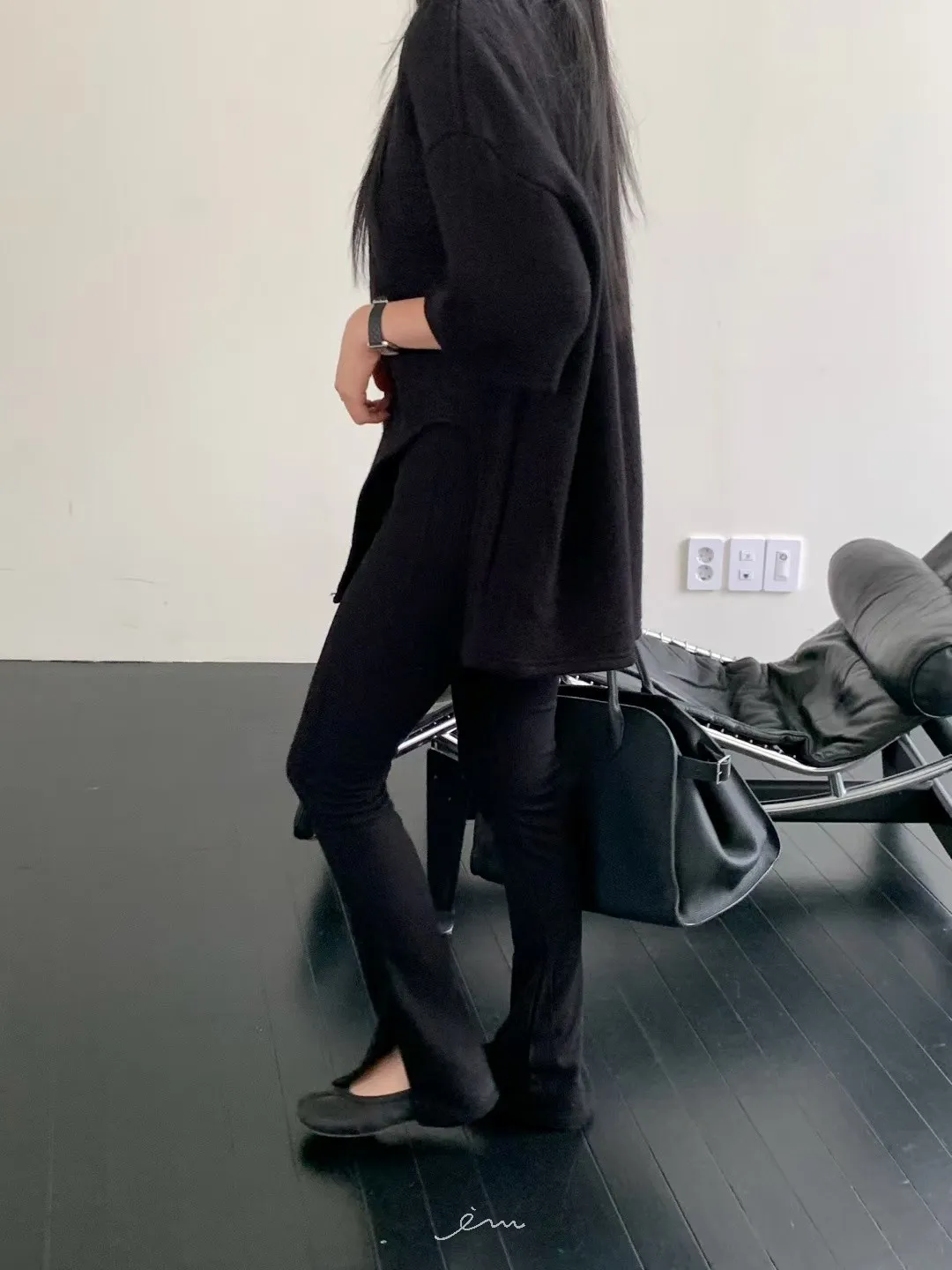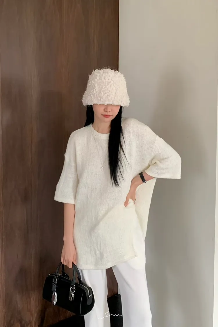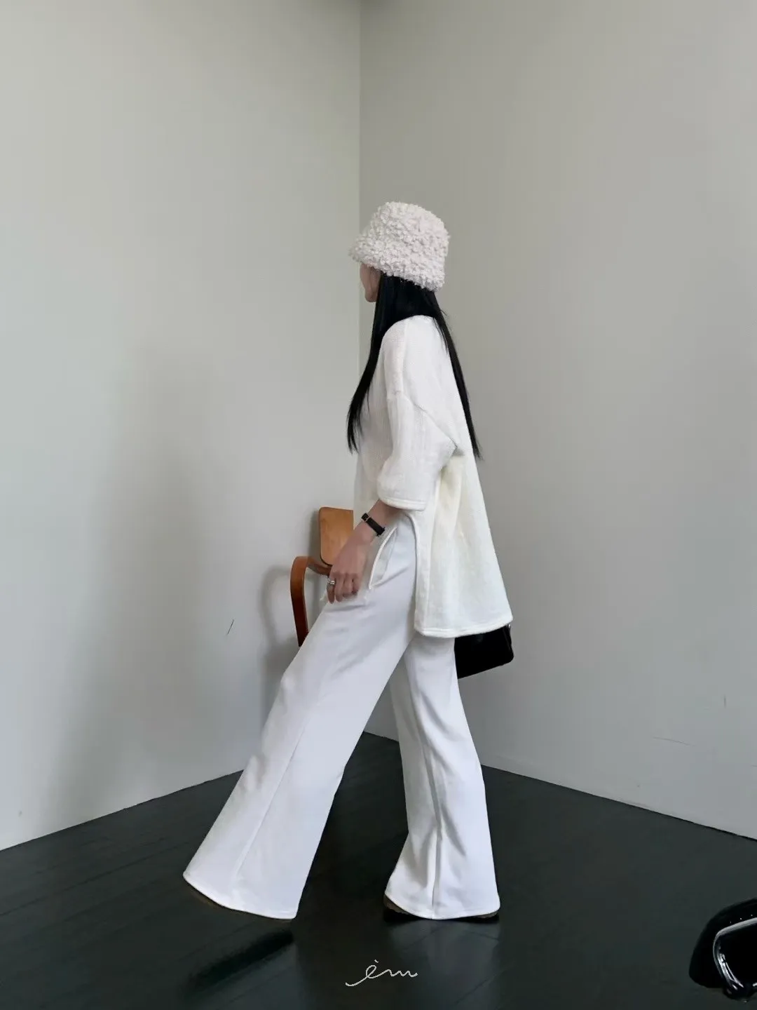 HO單邊開岔圈圈紋路素T(羊毛10%)(灰斷)