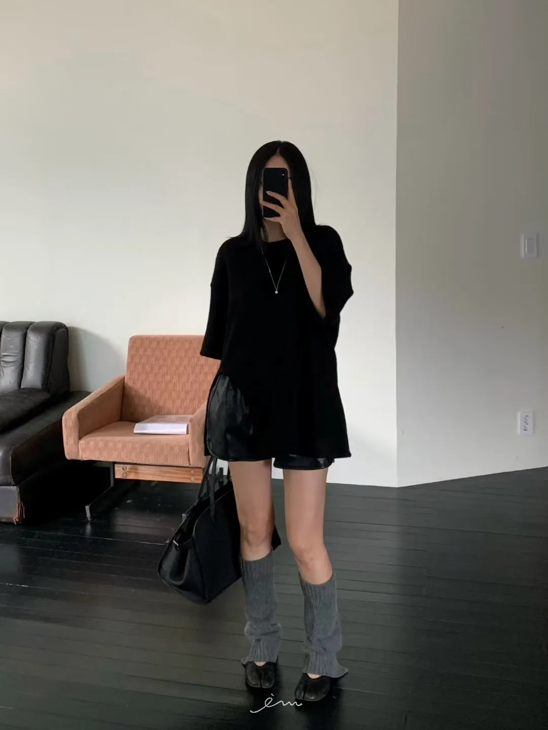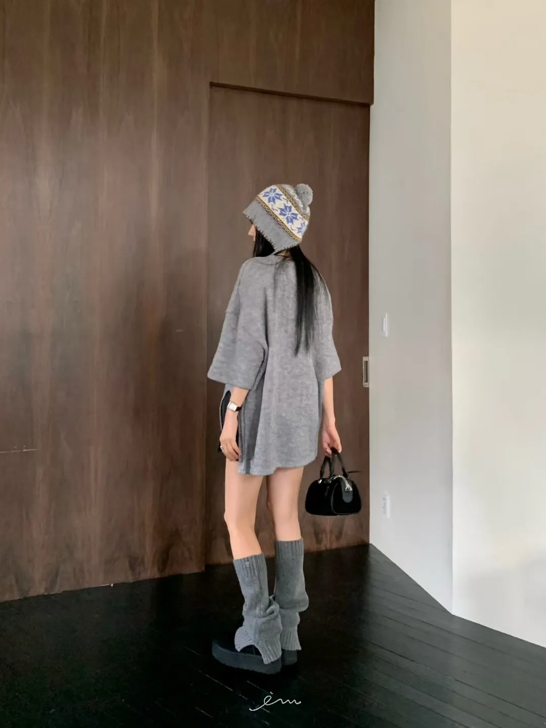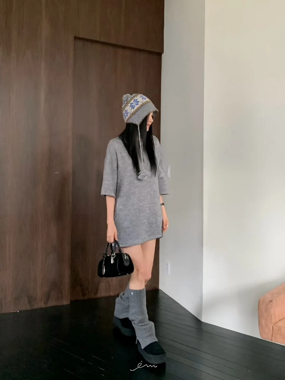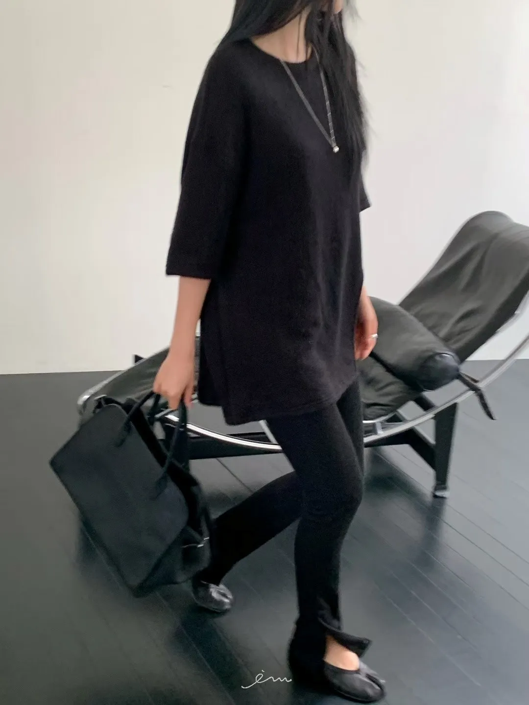 HO單邊開岔圈圈紋路素T(羊毛10%)(灰斷)