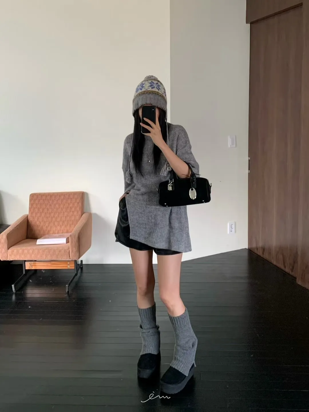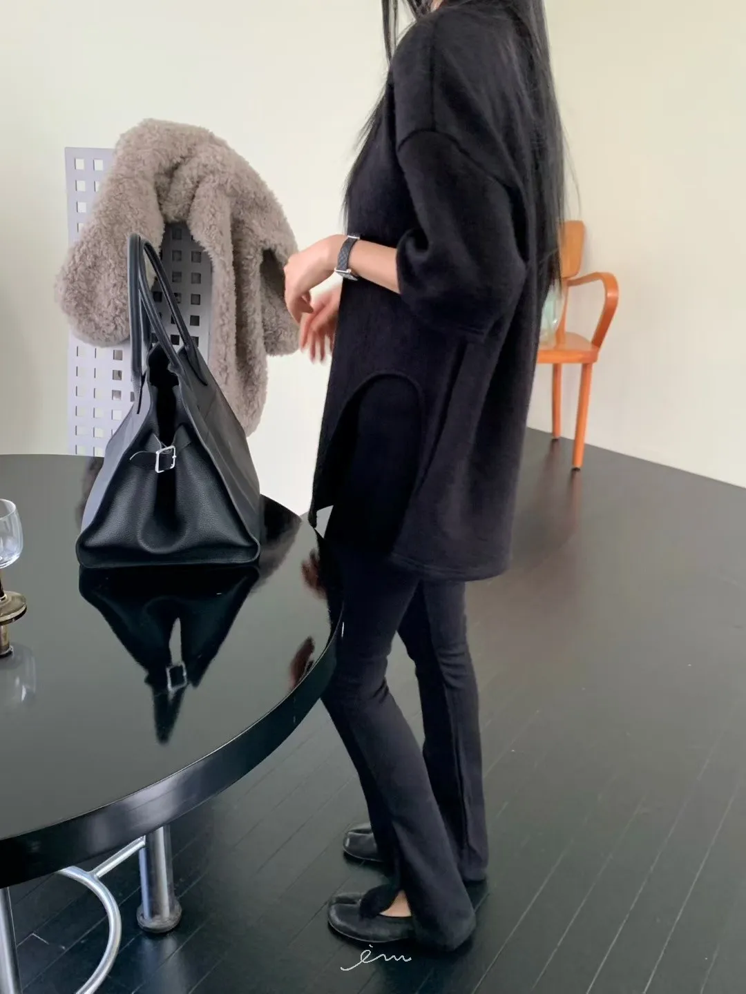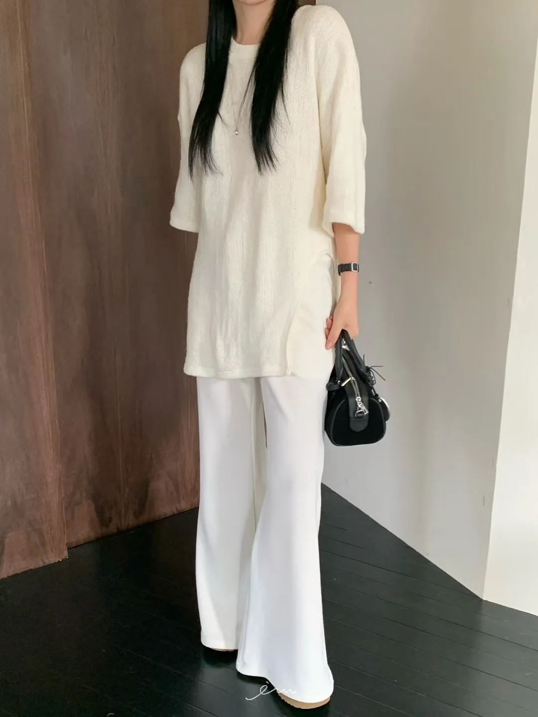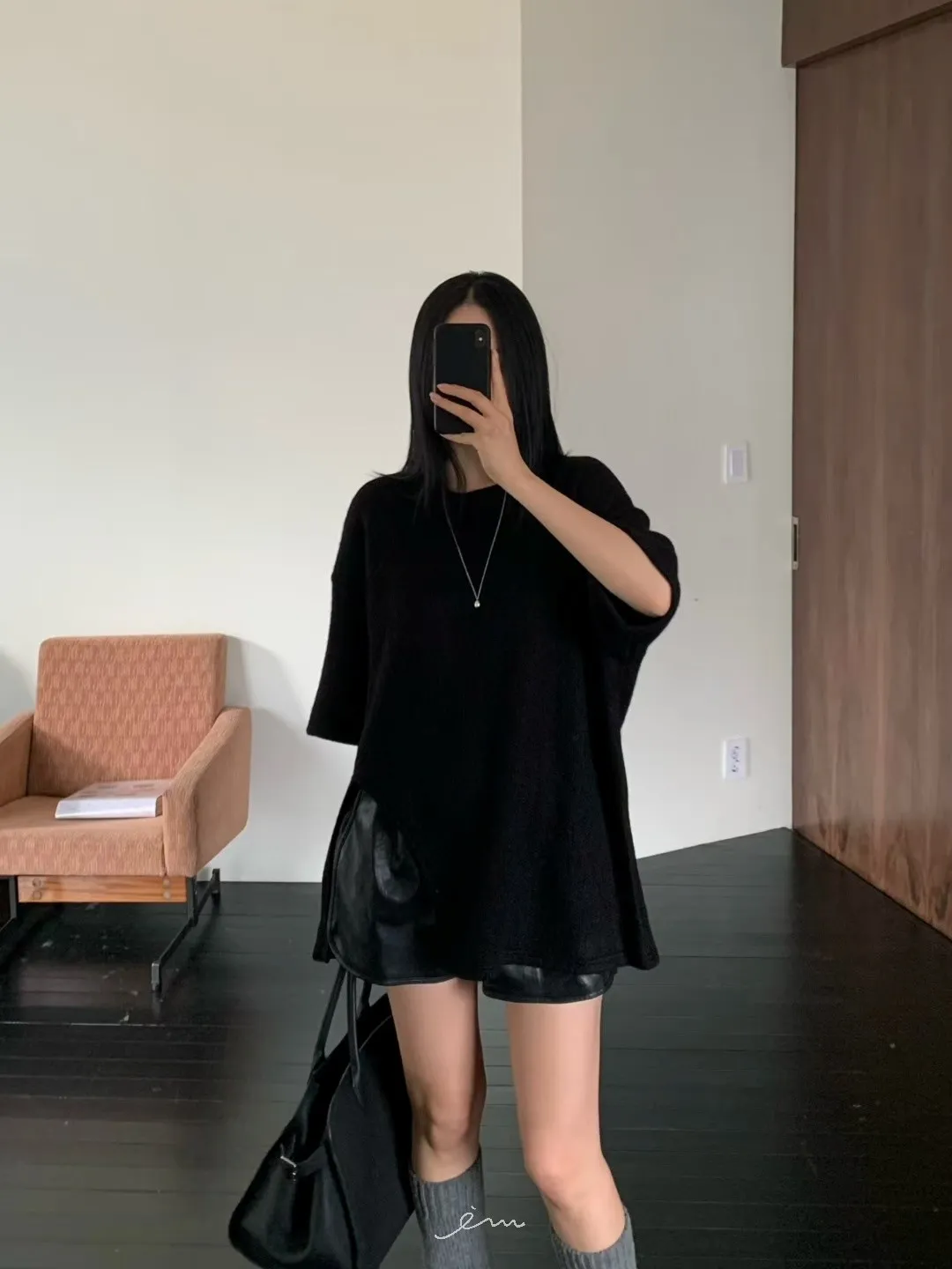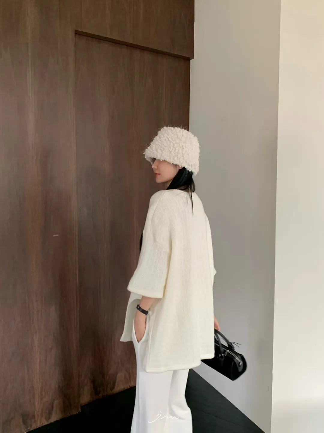 HO單邊開岔圈圈紋路素T(羊毛10%)(灰斷)