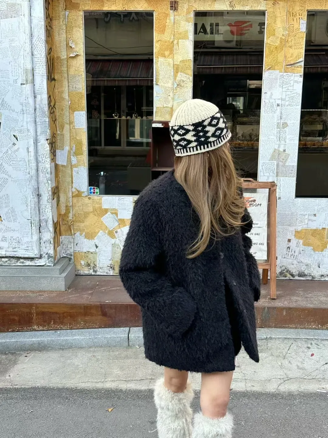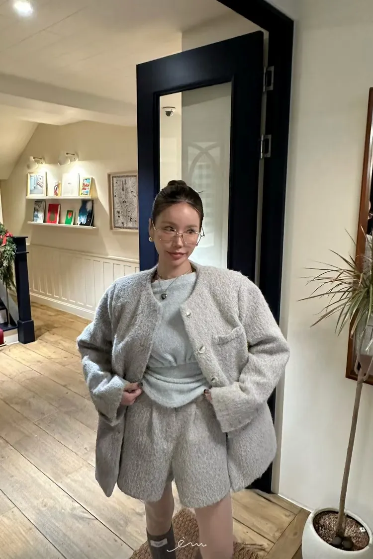 ZERO羊毛鈕釦後鬆緊毛感短褲
