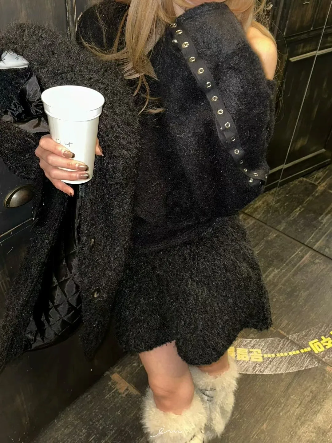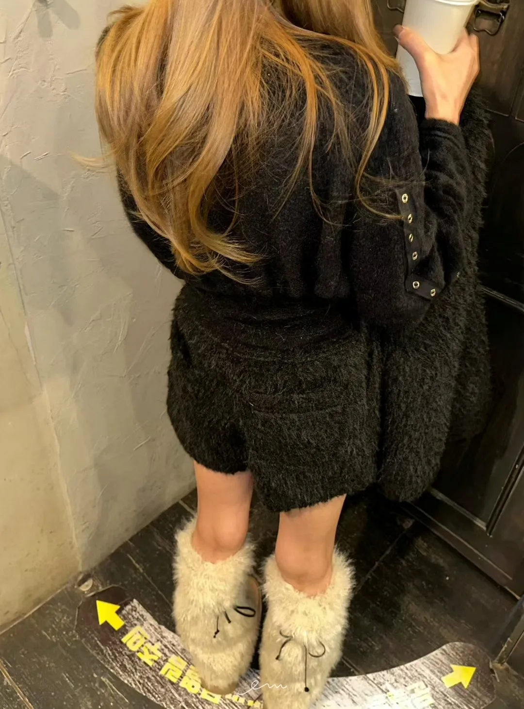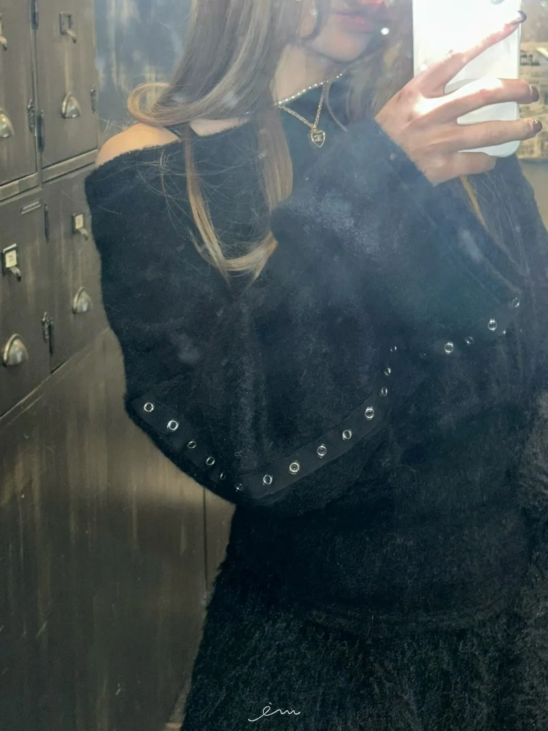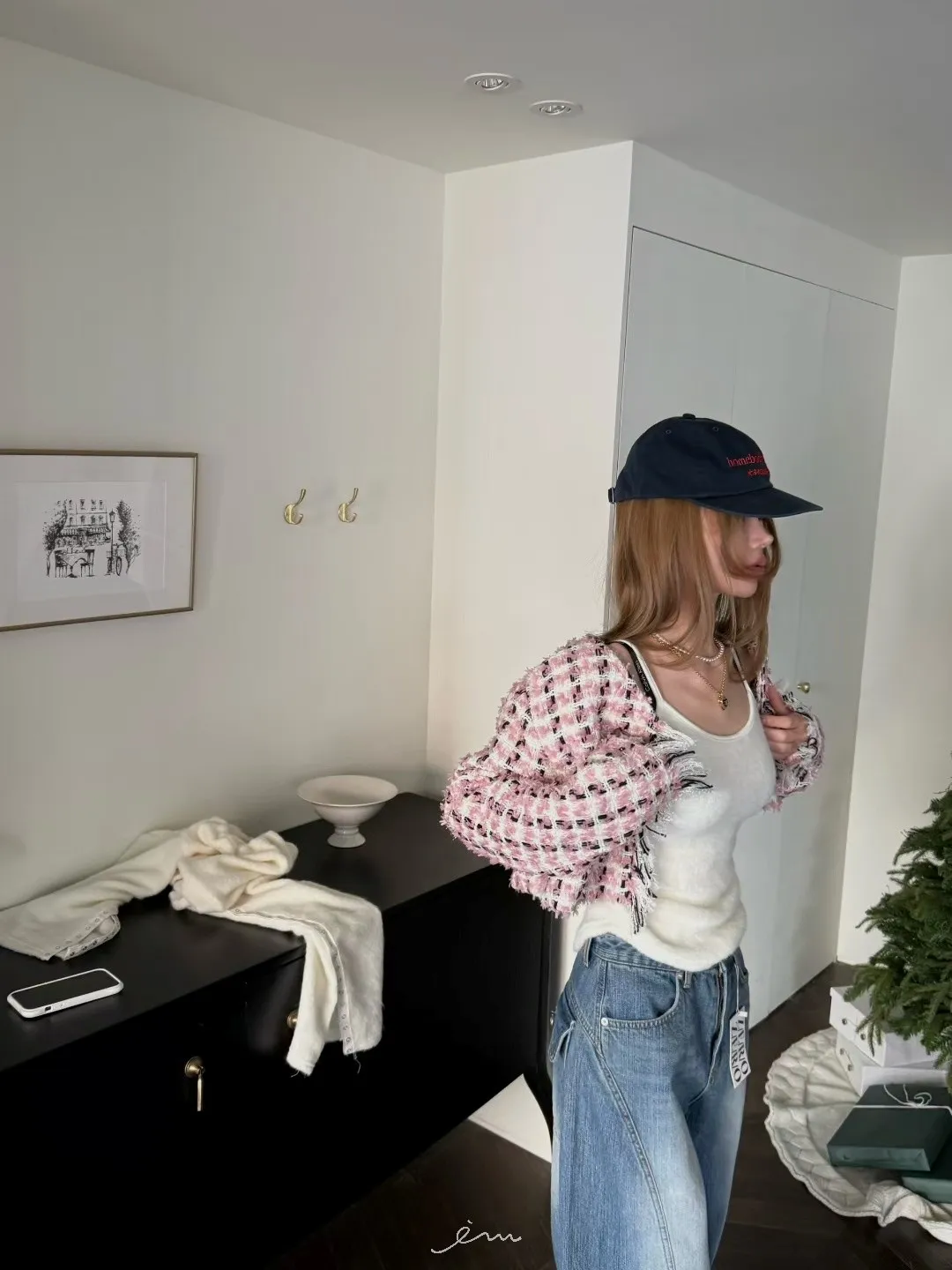 ZERO毛感細肩背心+手袖壓釦短版長袖衣