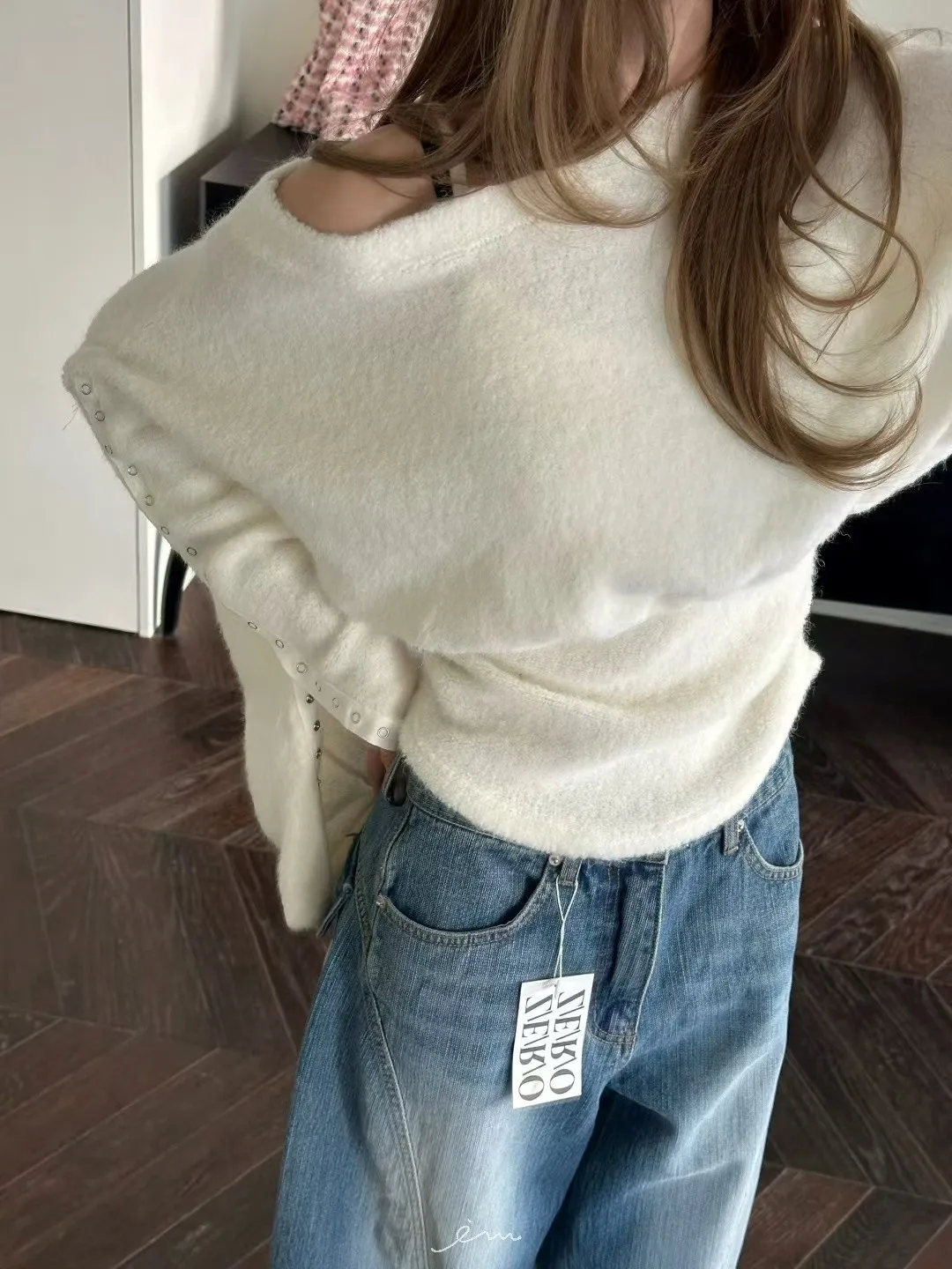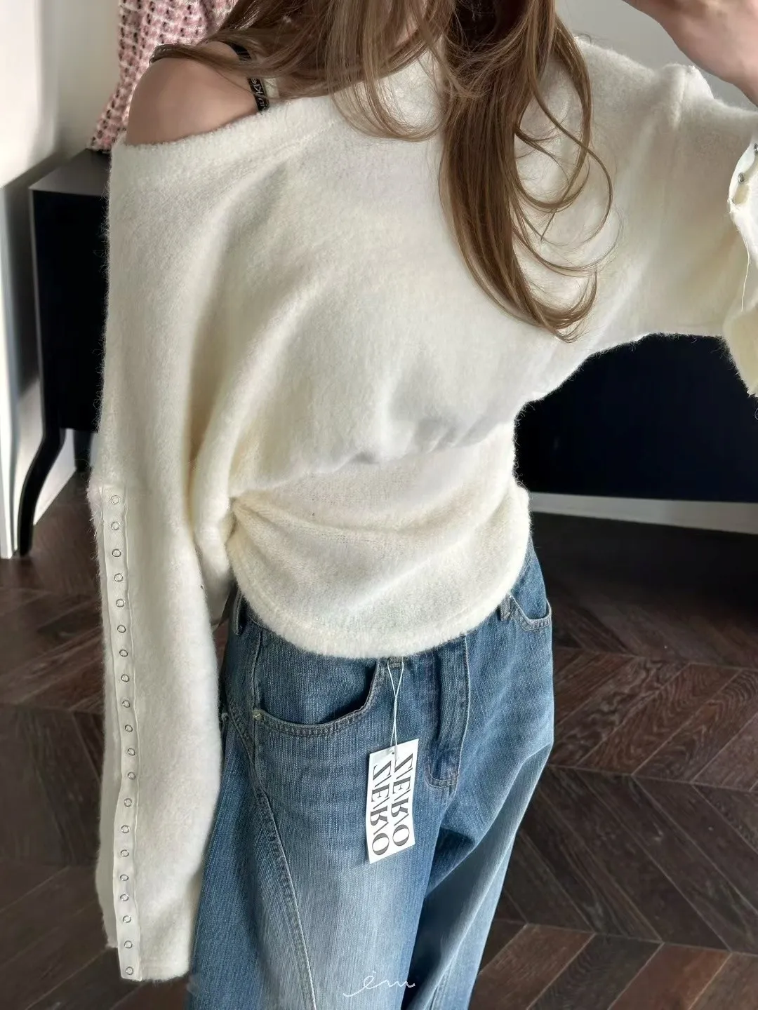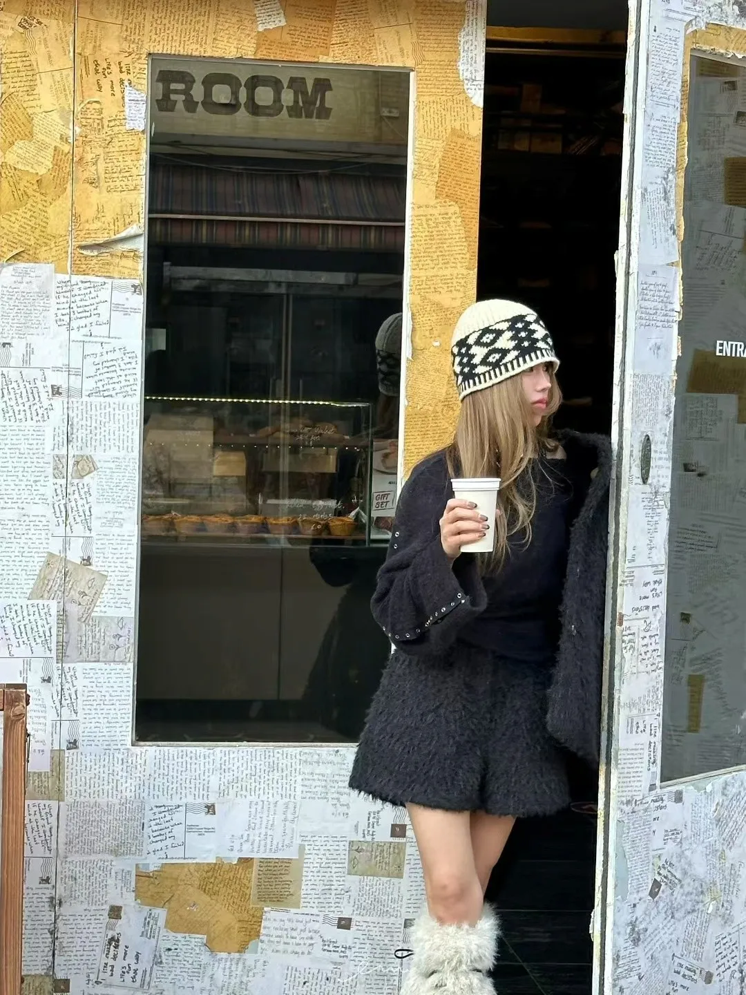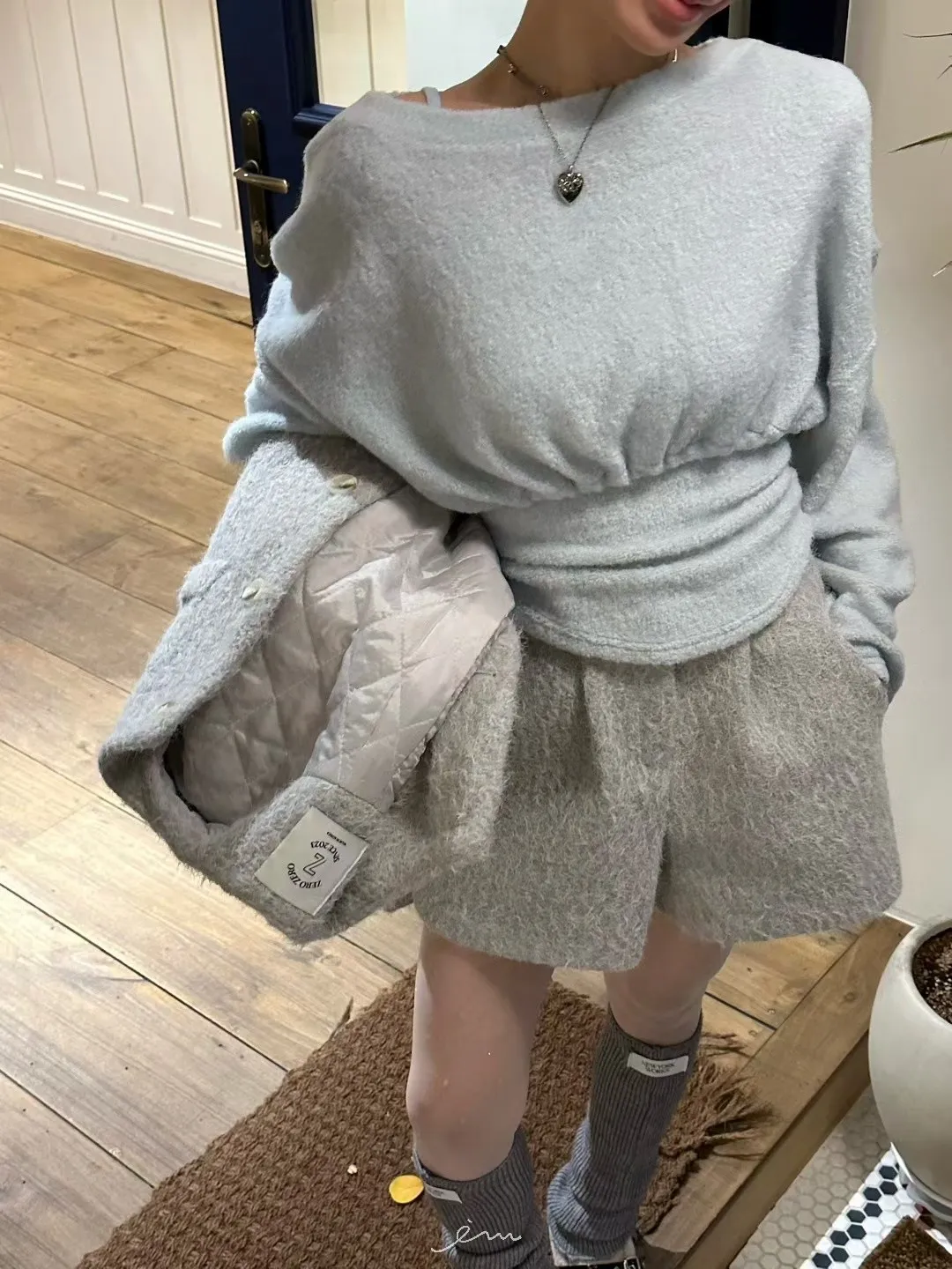 ZERO毛感細肩背心+手袖壓釦短版長袖衣