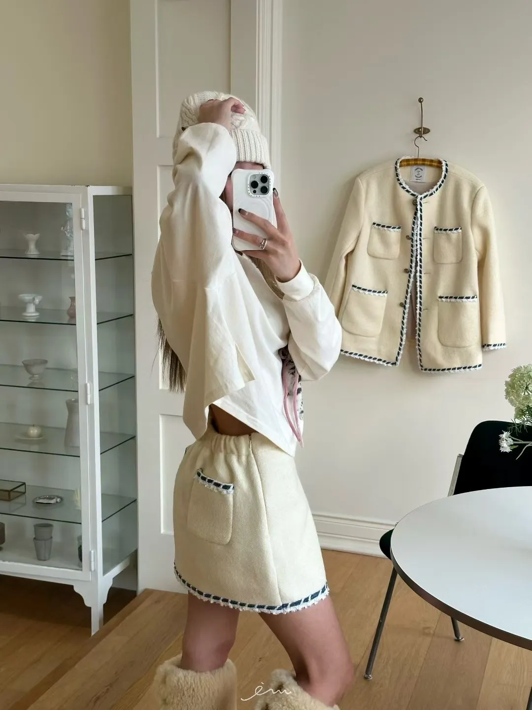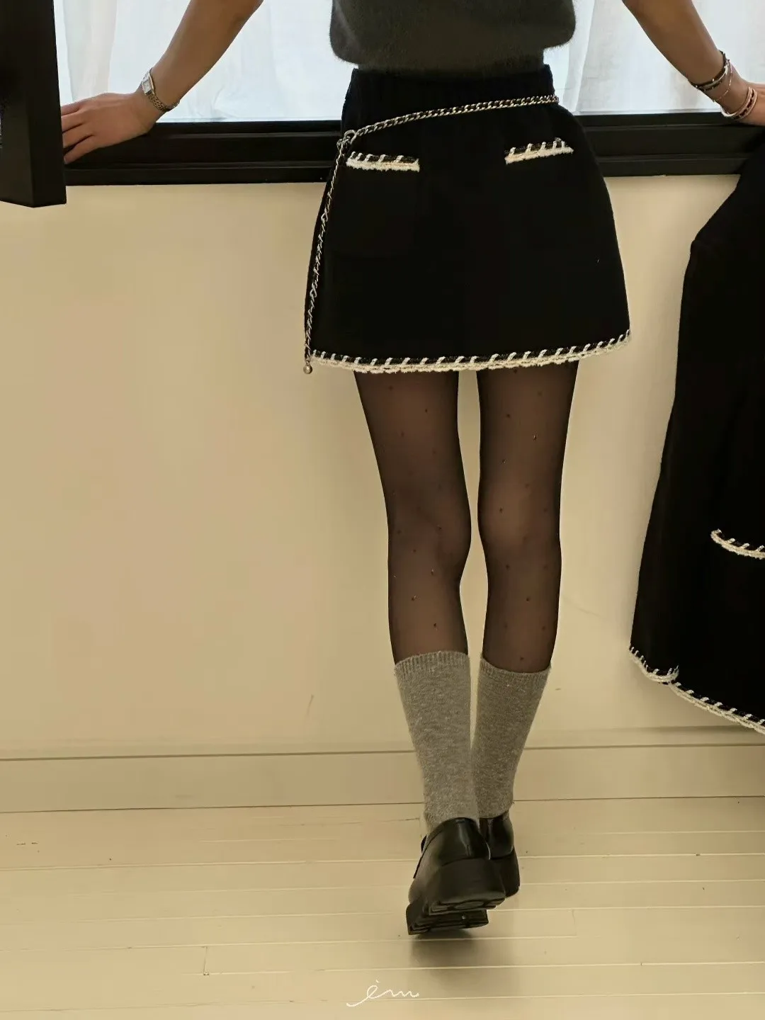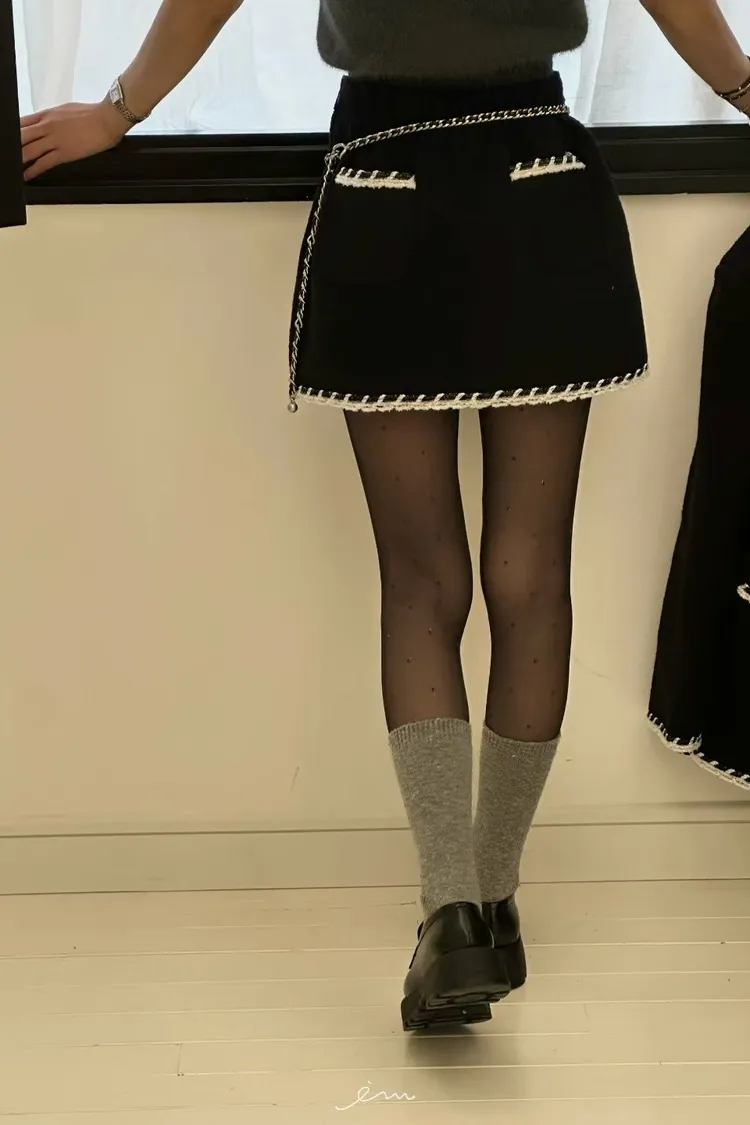 ZERO羊毛後雙口袋條紋邊短褲裙