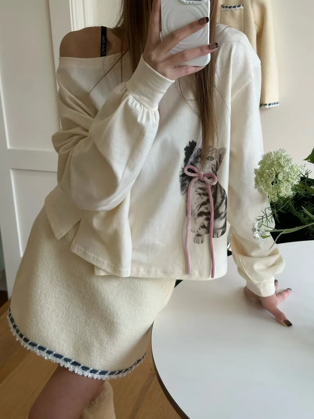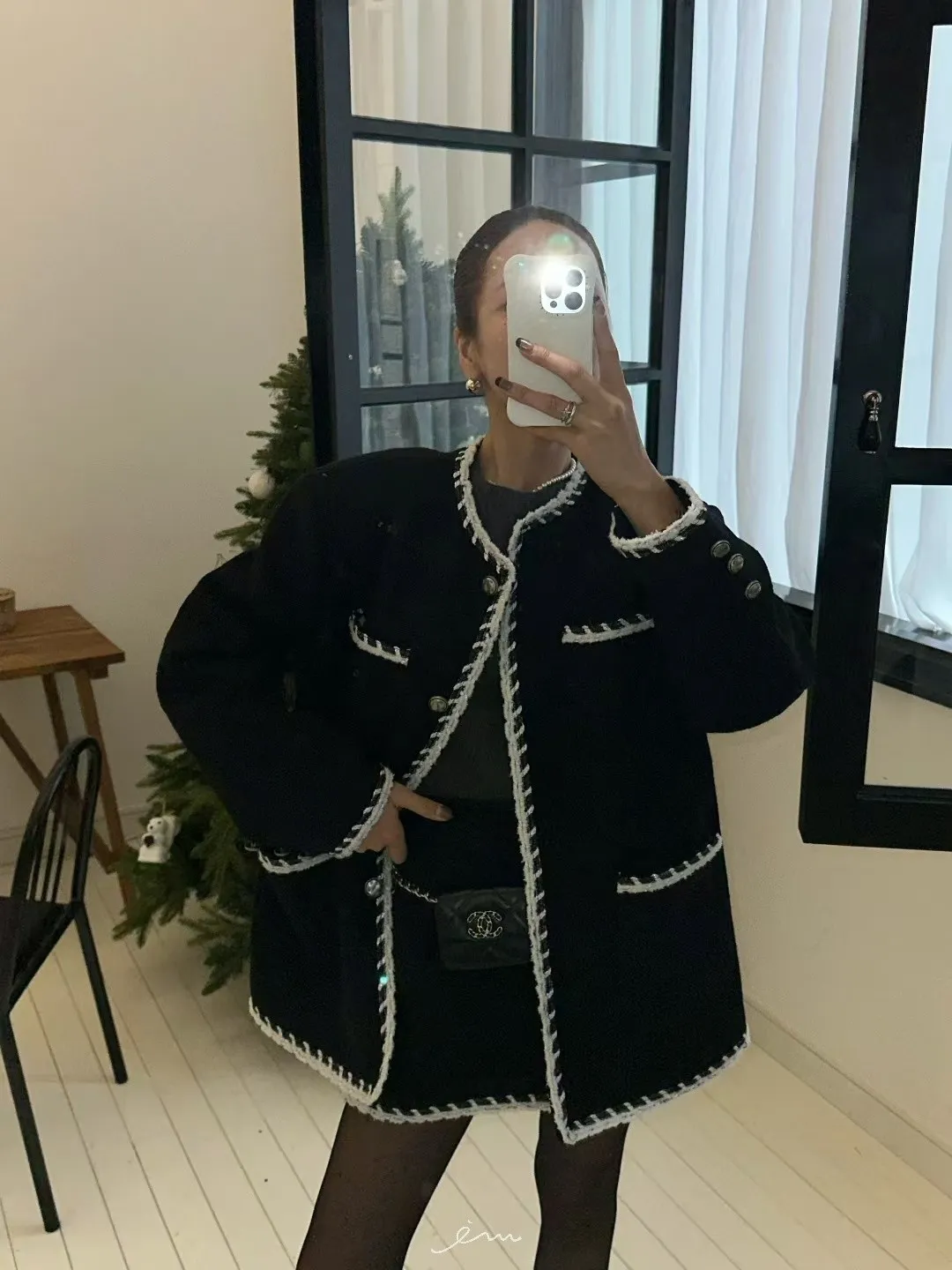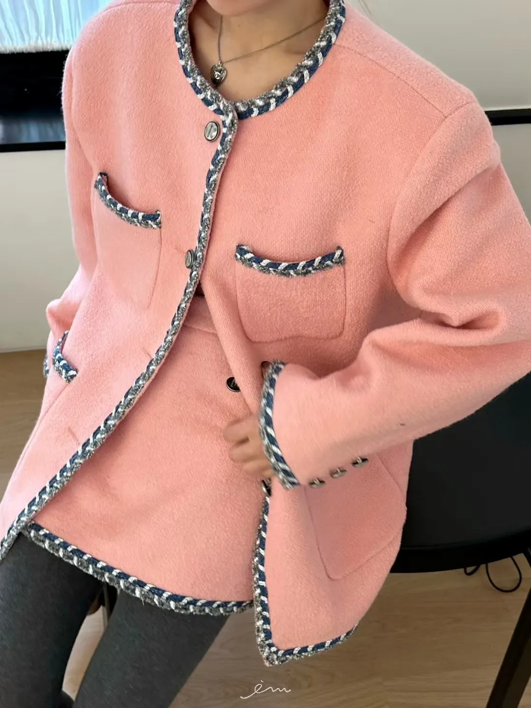 ZERO羊毛後雙口袋條紋邊短褲裙
