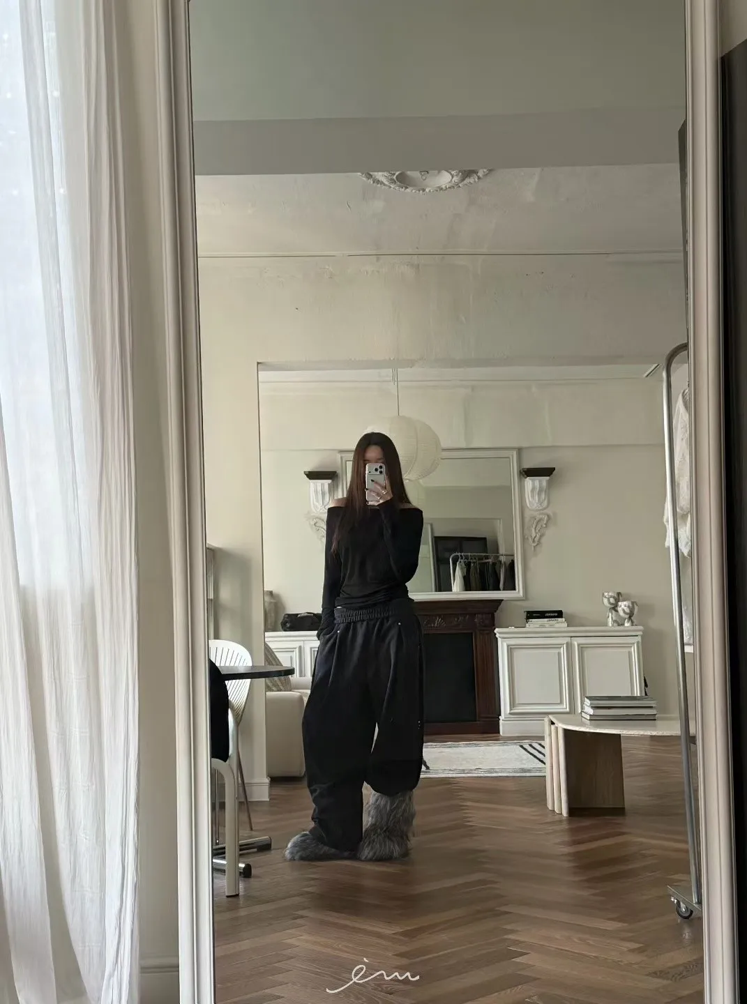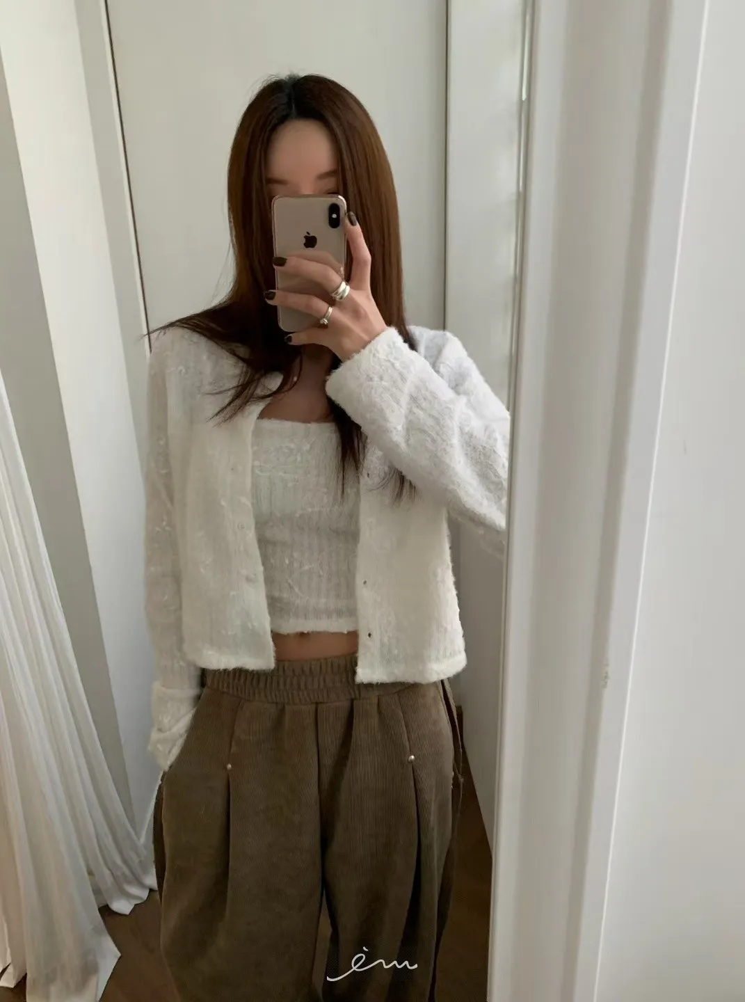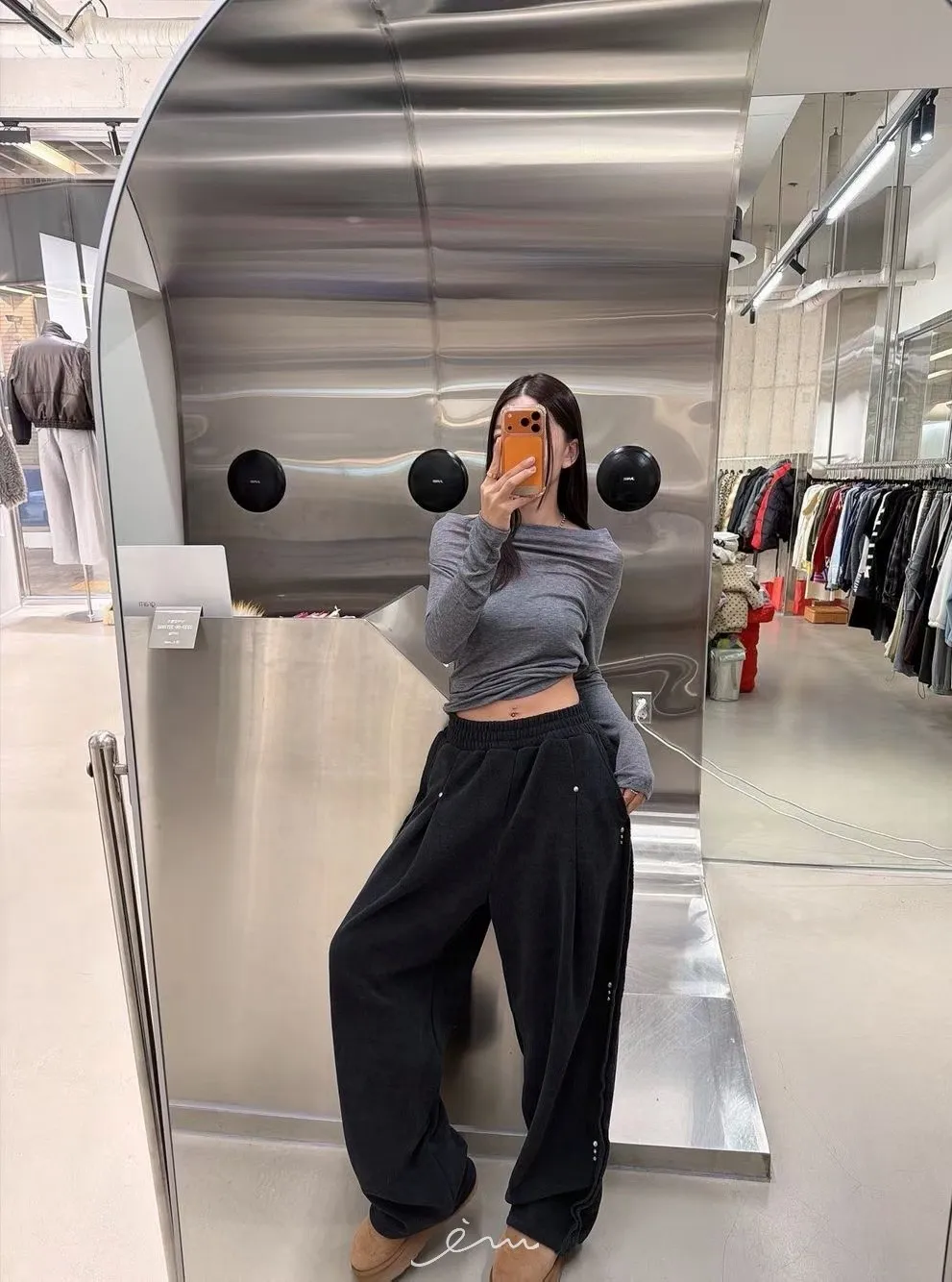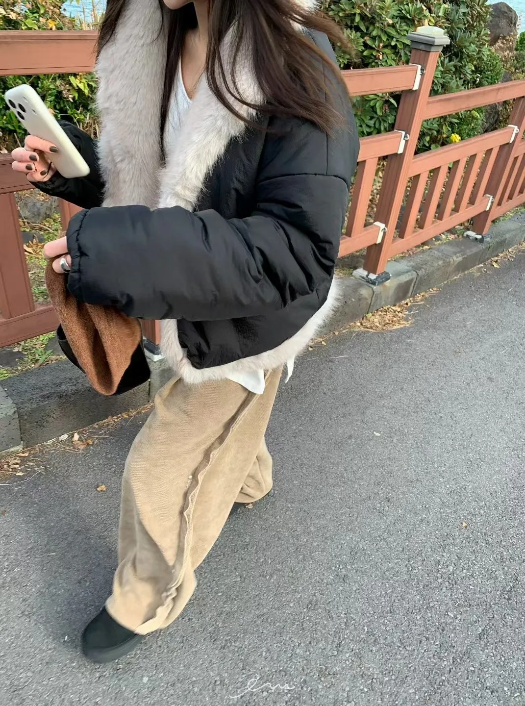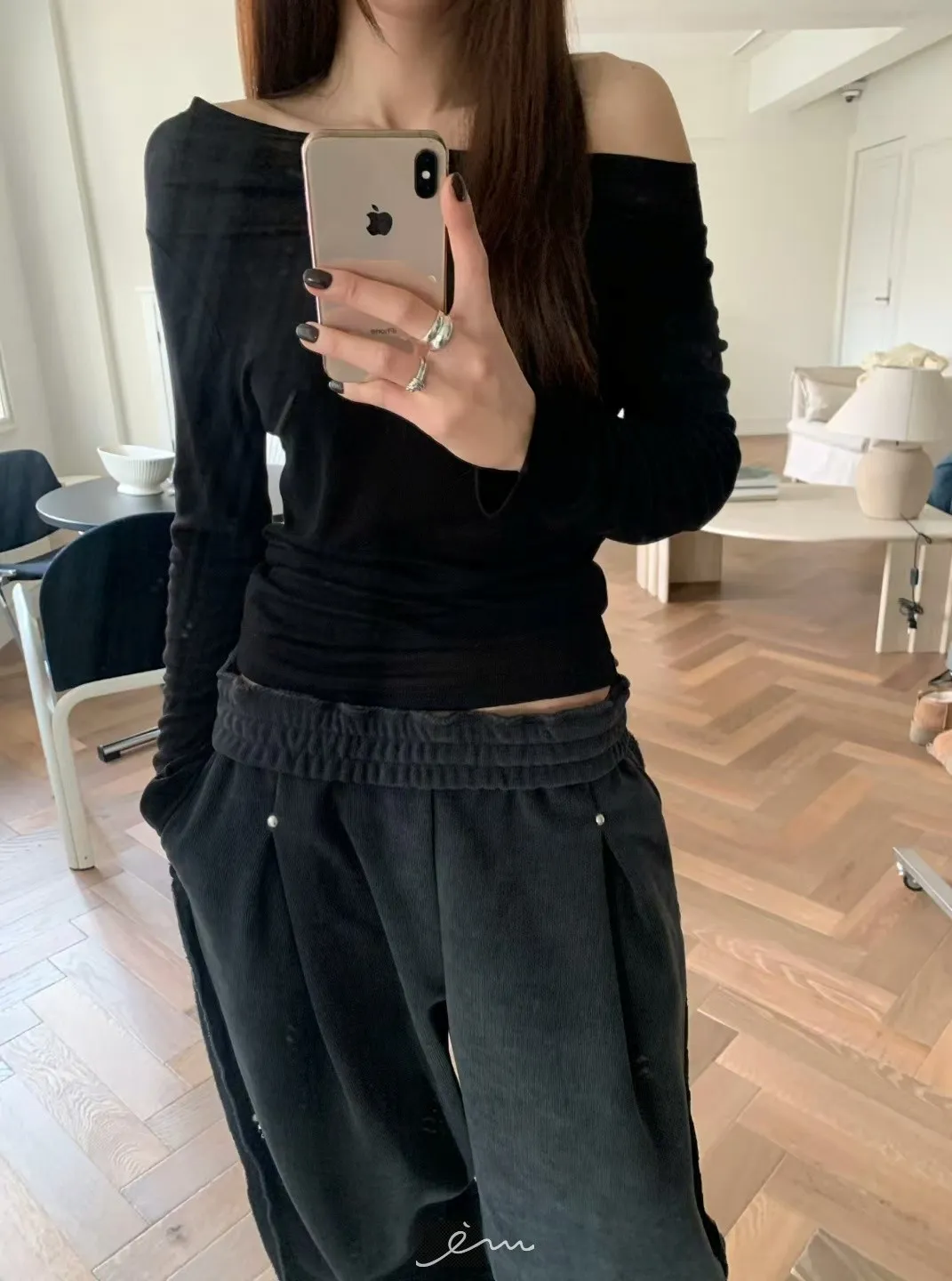 BE側釘珠造型絨料鬆緊長褲
