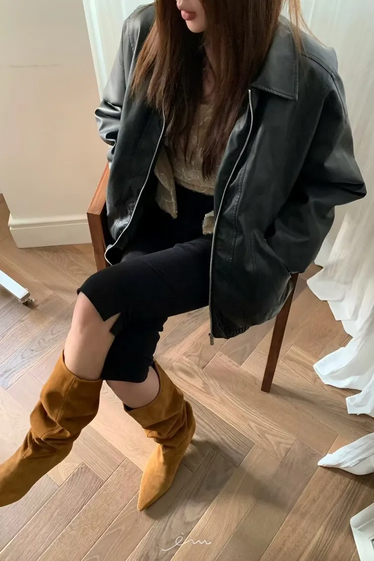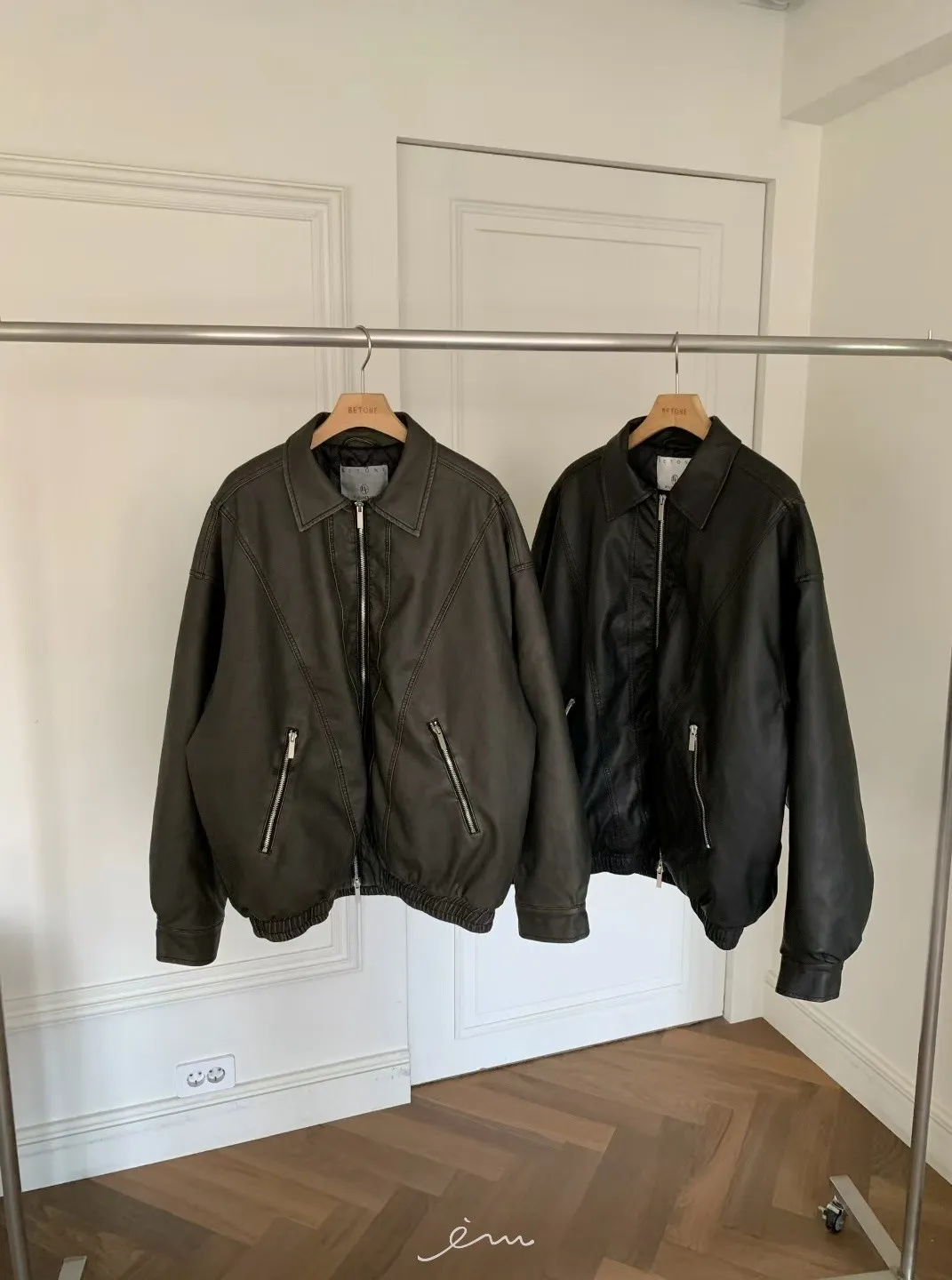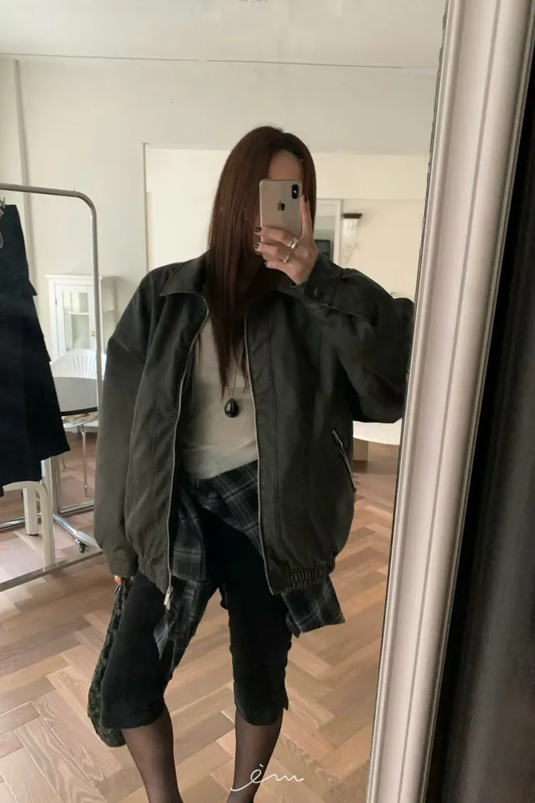 BE拉鍊口袋翻領夾棉皮外 sale
