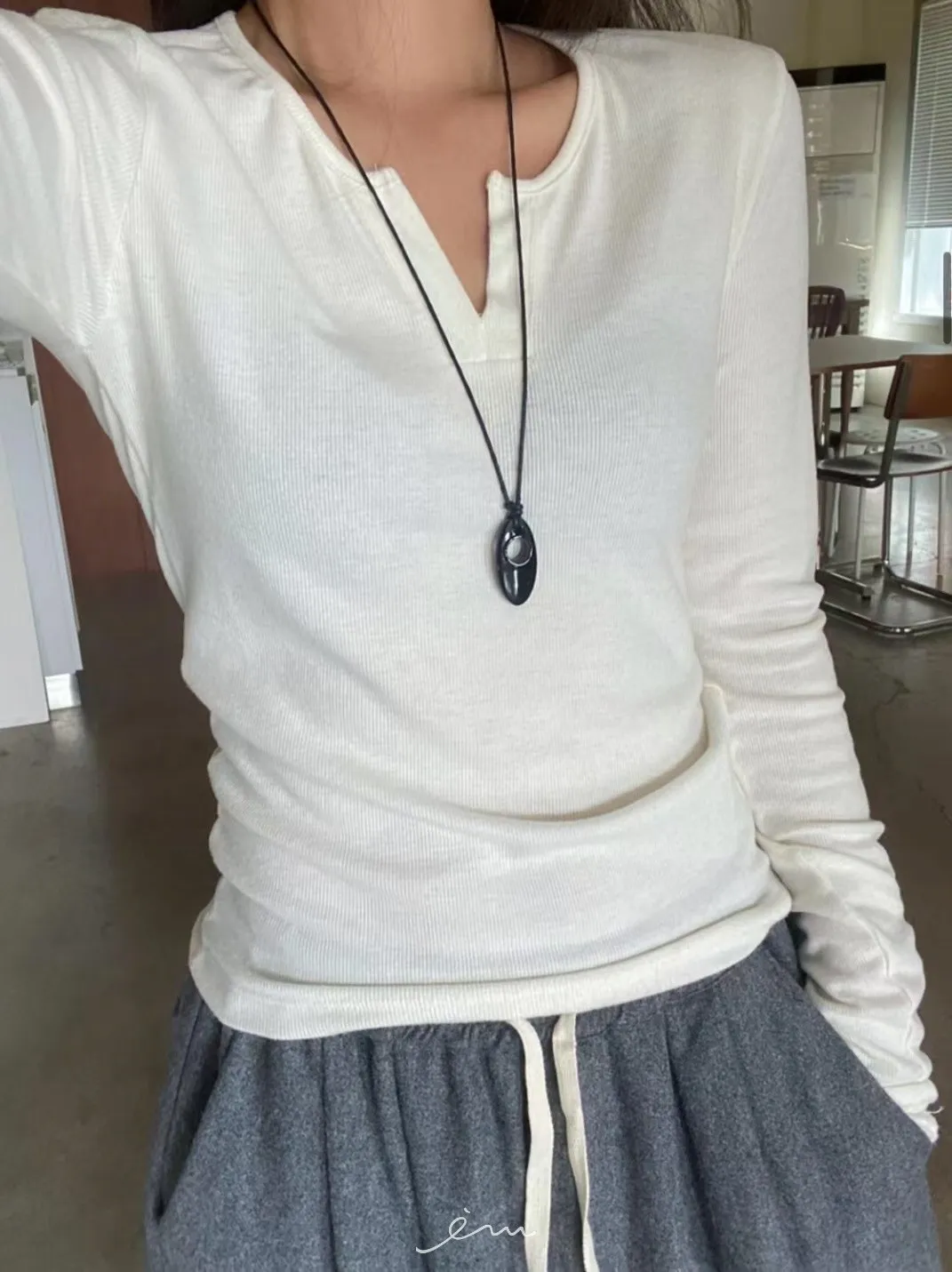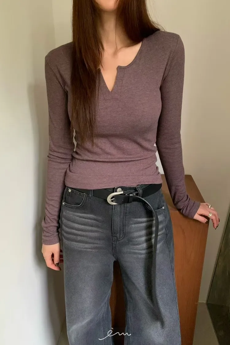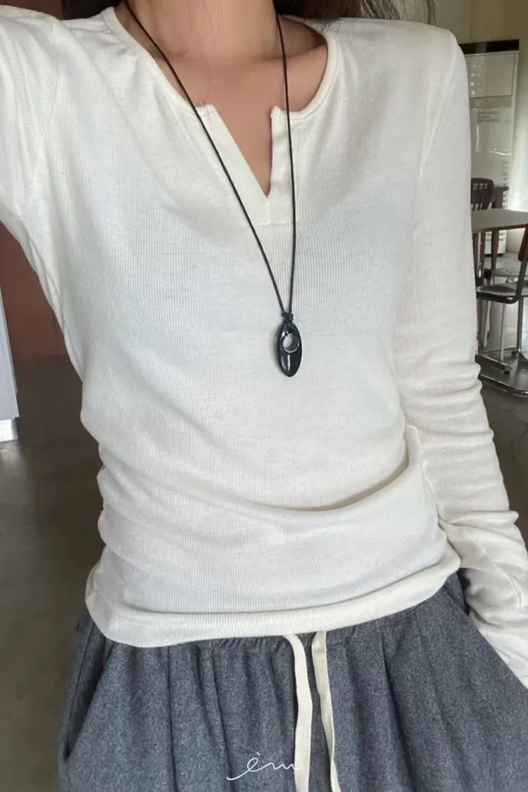 BE-磨毛V字素面長袖衣