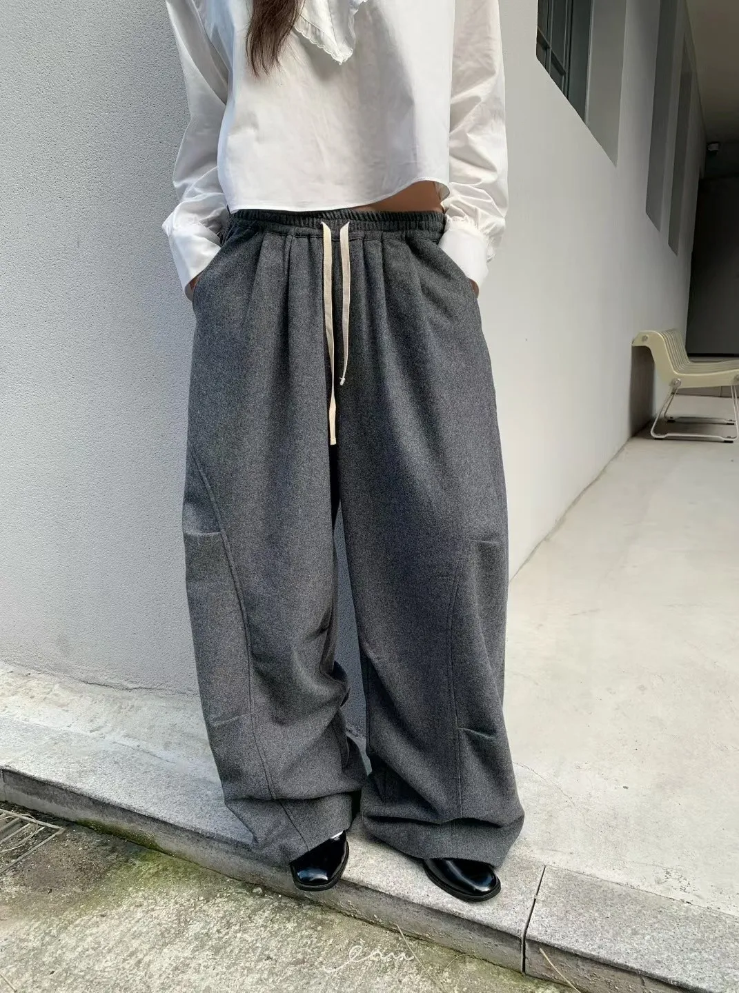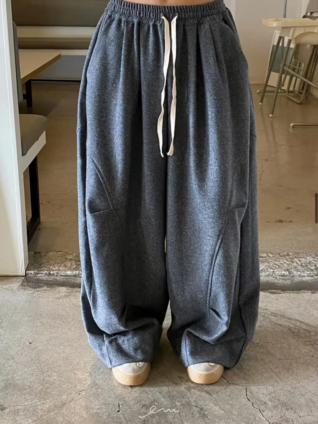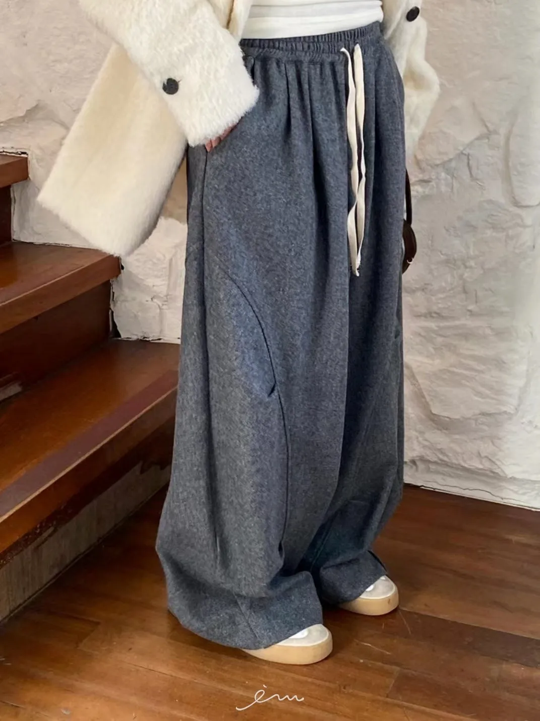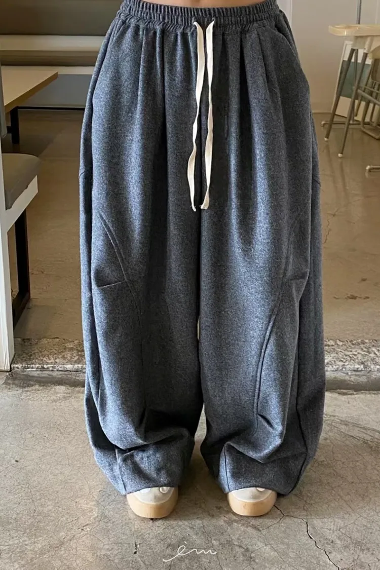 BE弧形車線打摺抽繩褲 sale