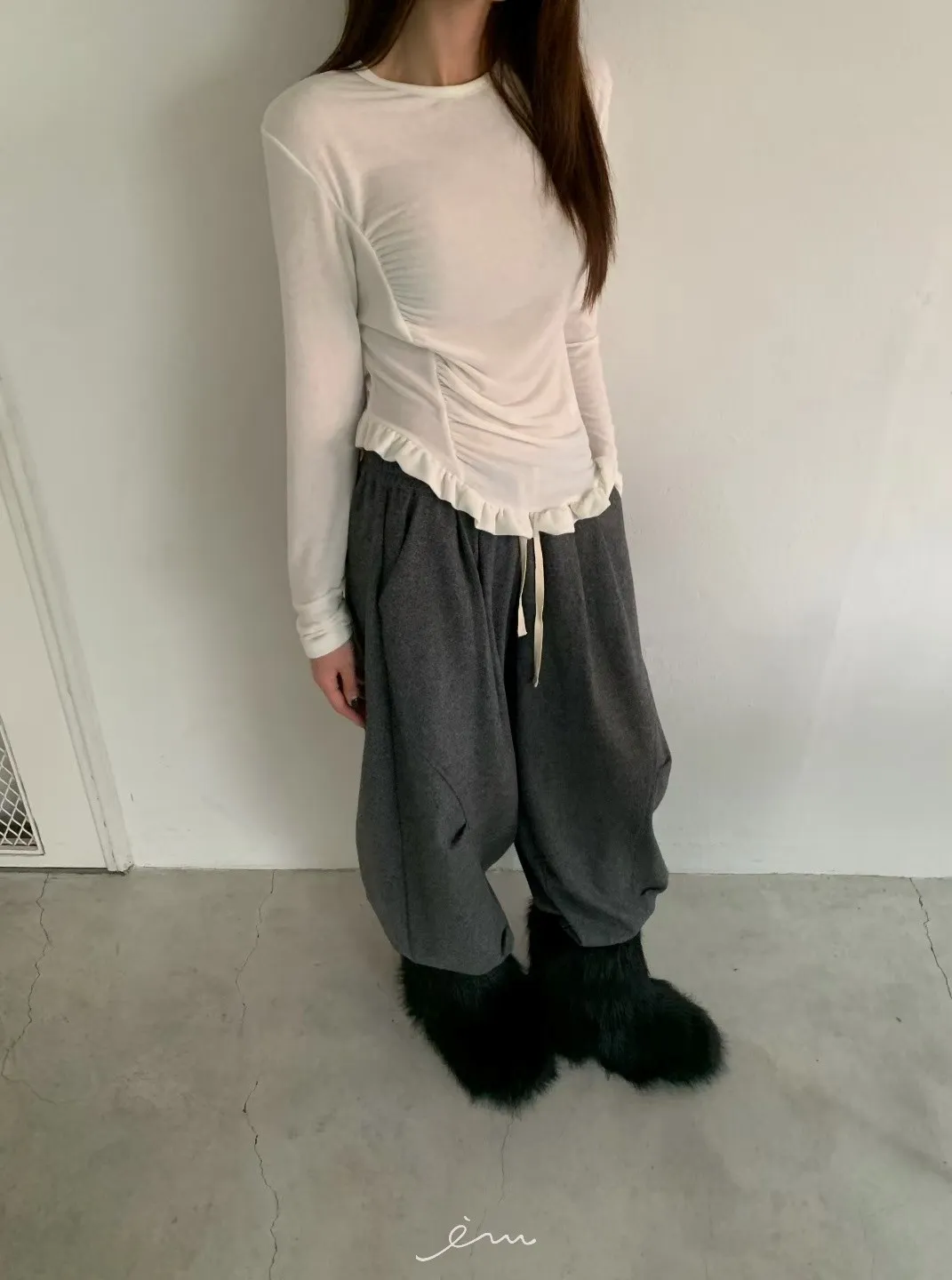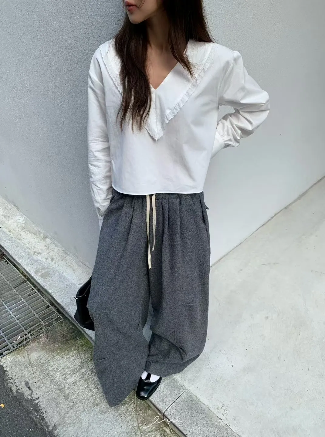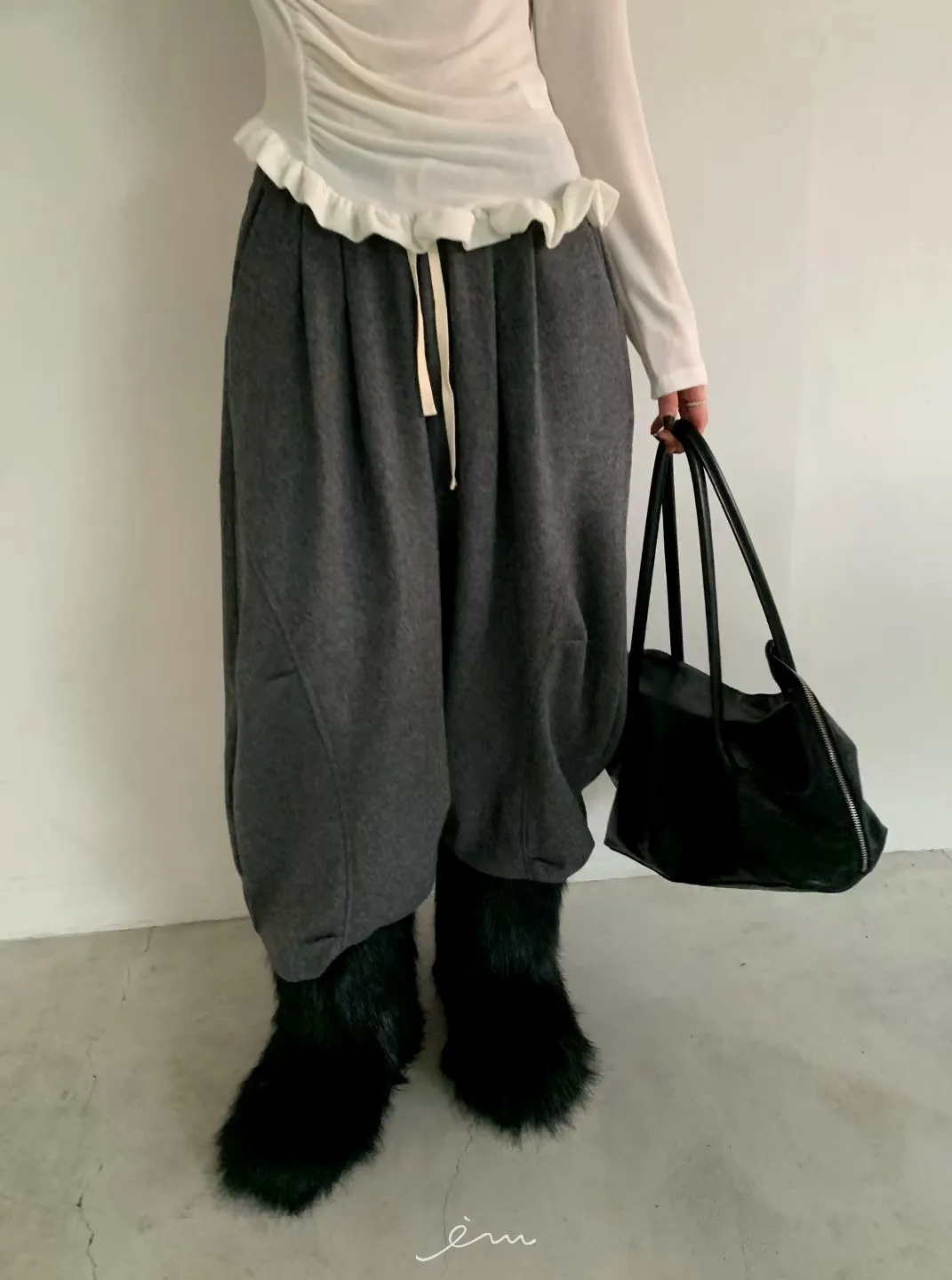BE弧形車線打摺抽繩褲 sale