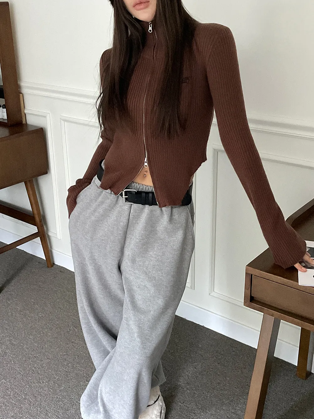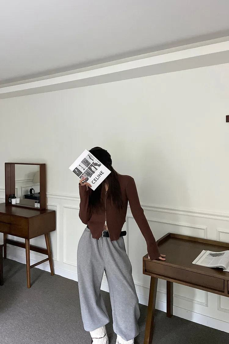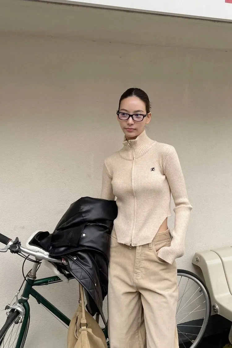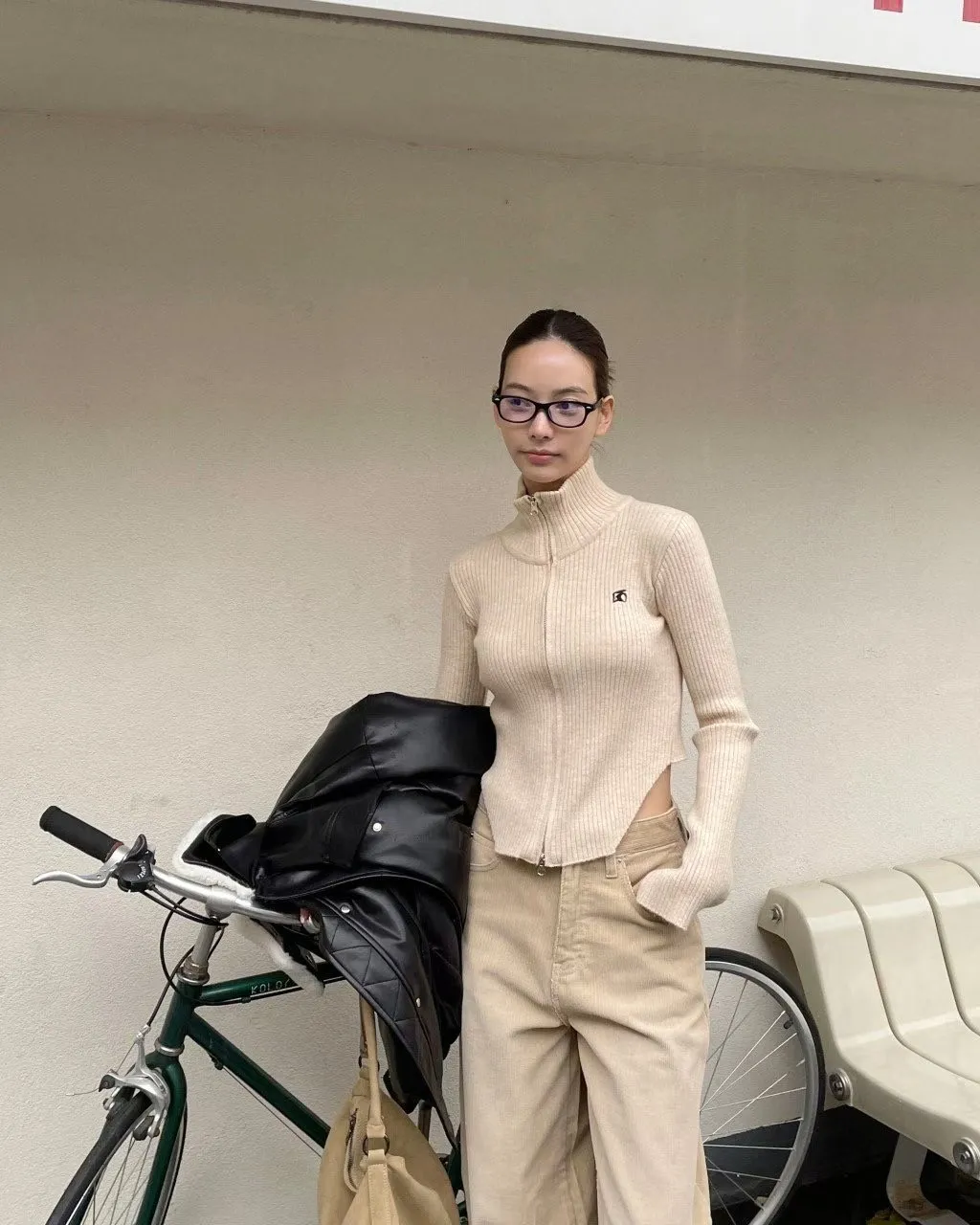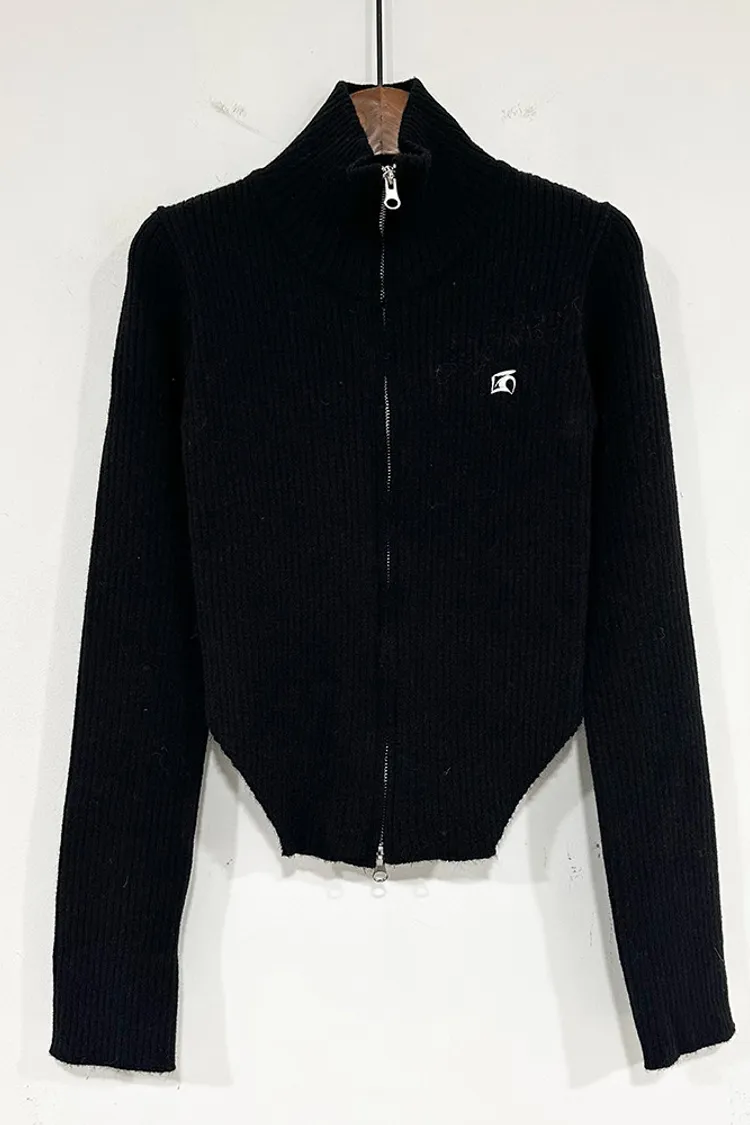 側挖雙拉鍊高領坑條衣