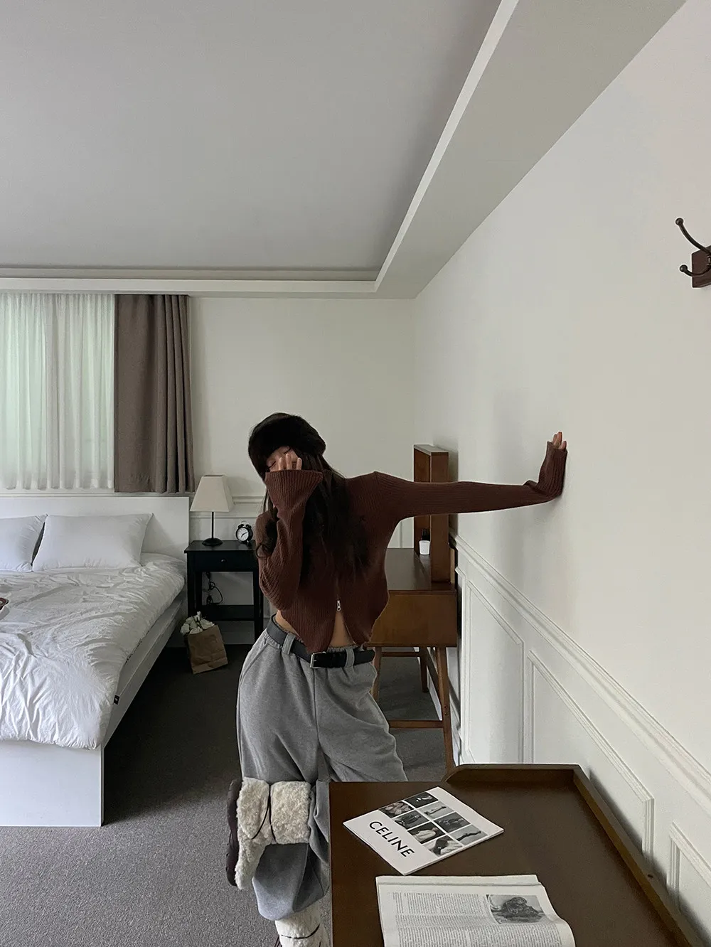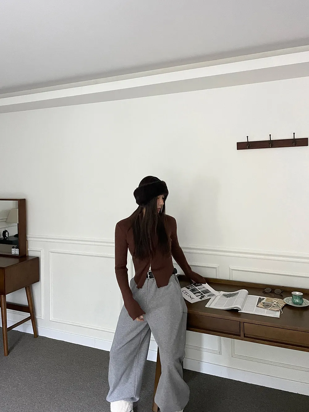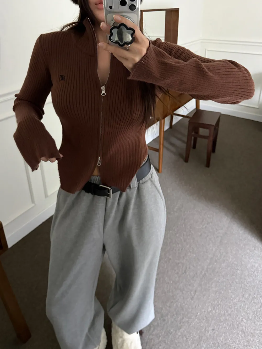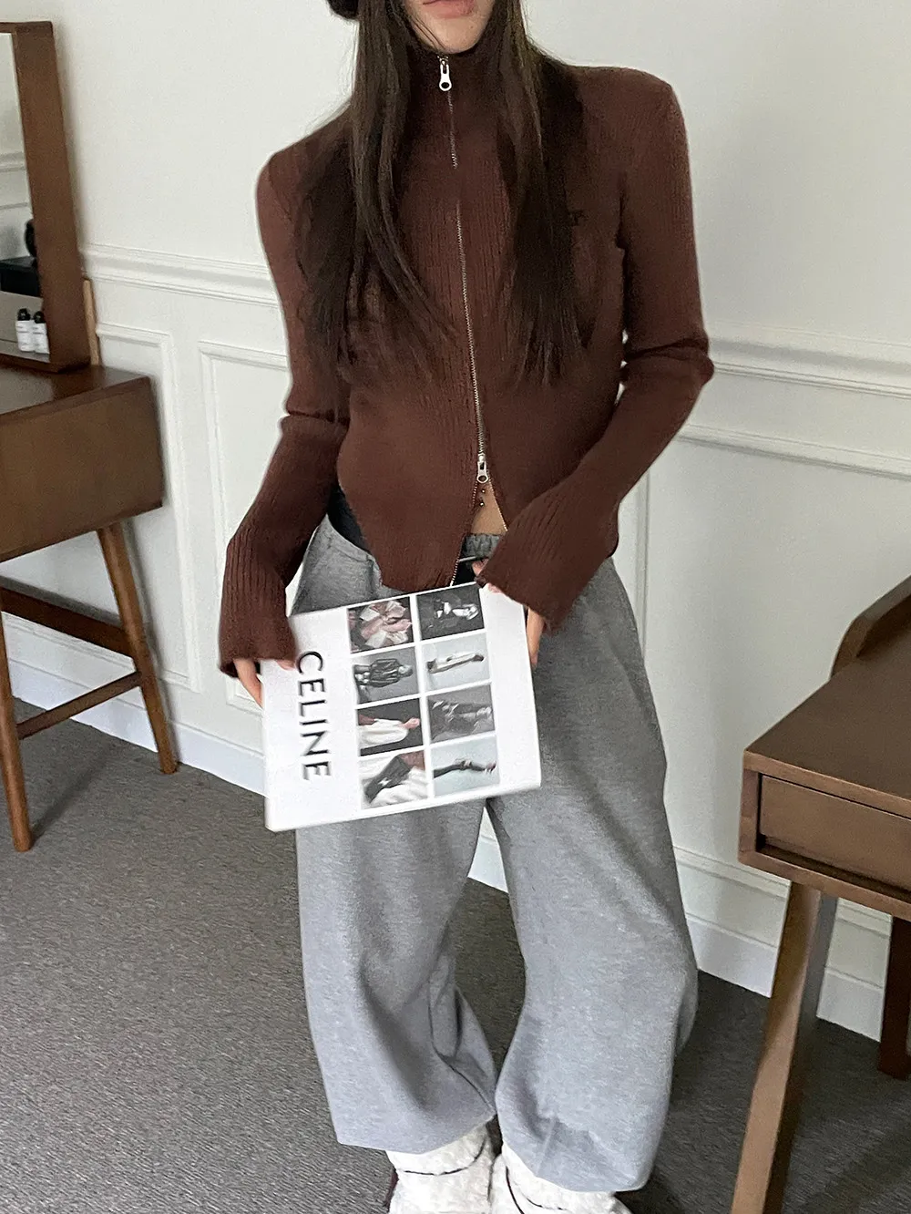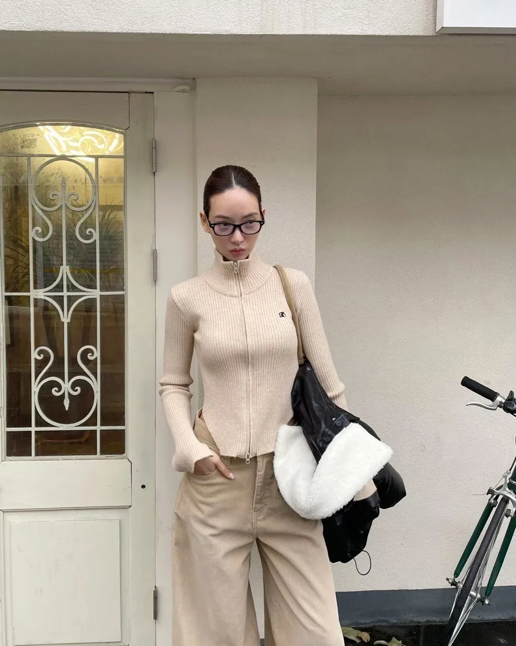 側挖雙拉鍊高領坑條衣