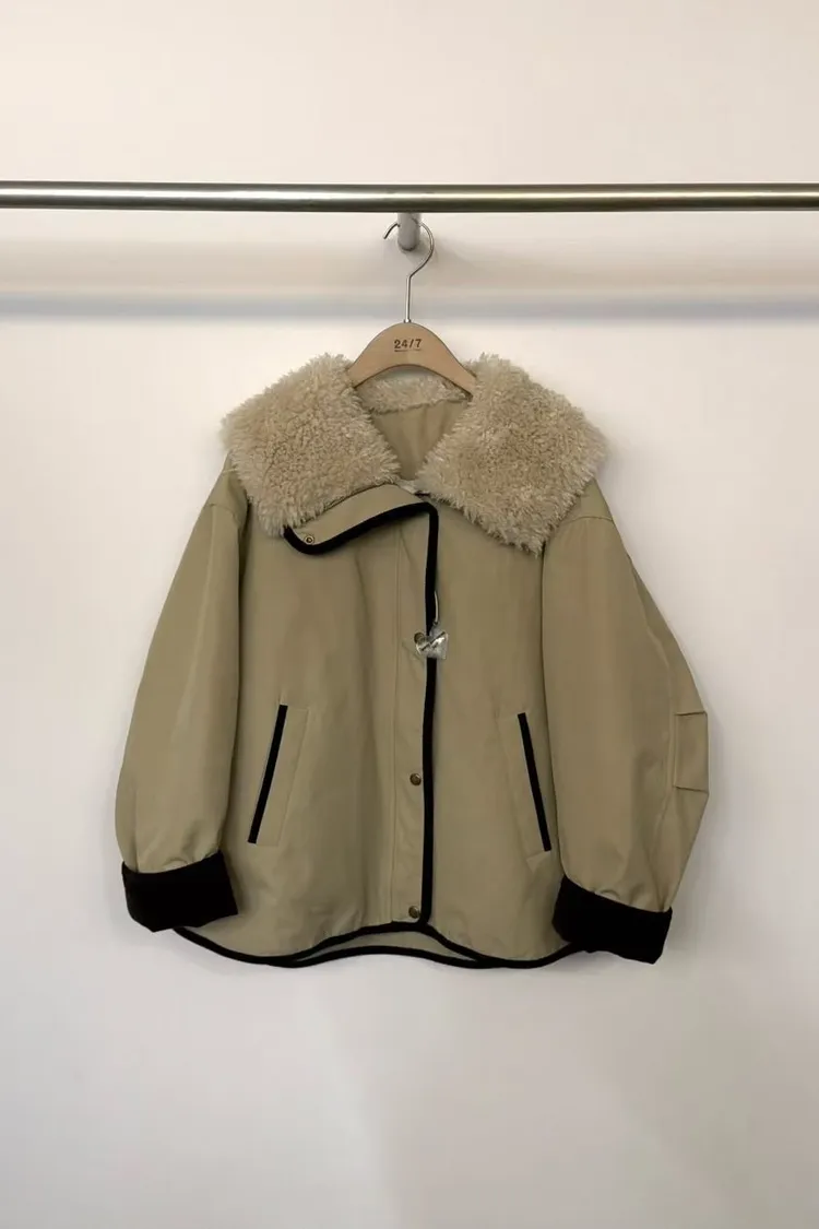 翻領毛毛鴨絨燈芯絨滾邊外套