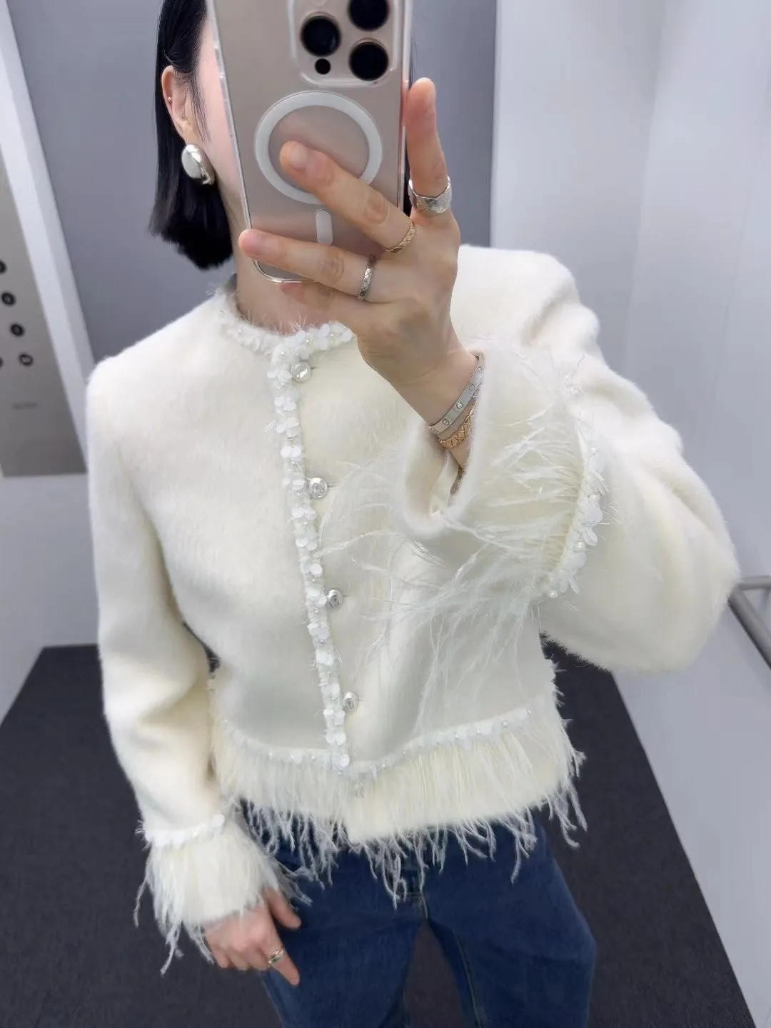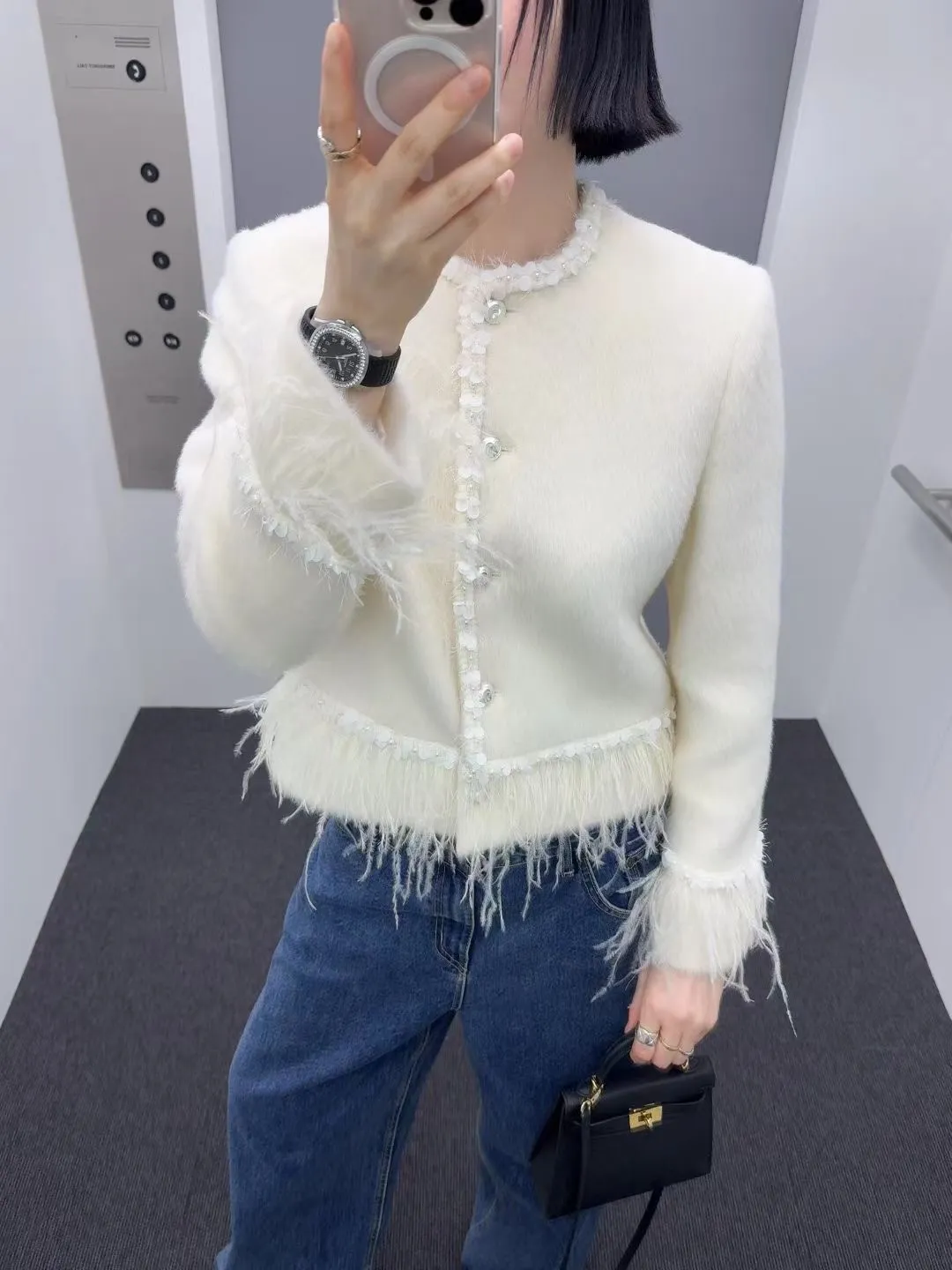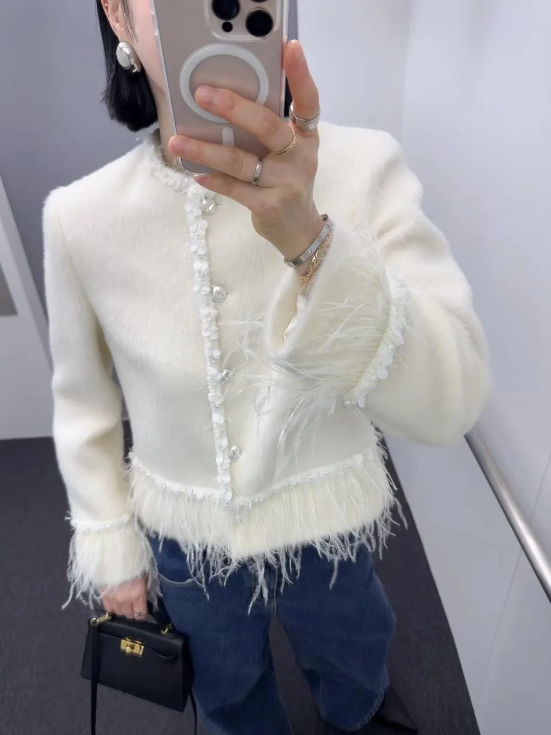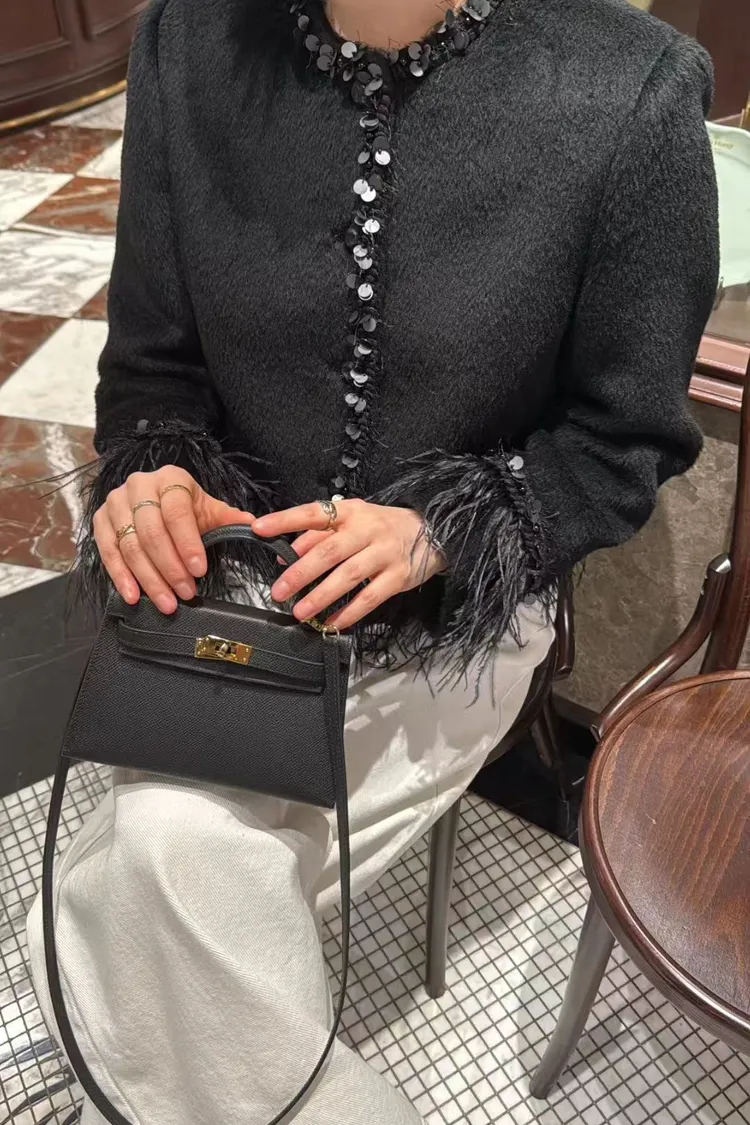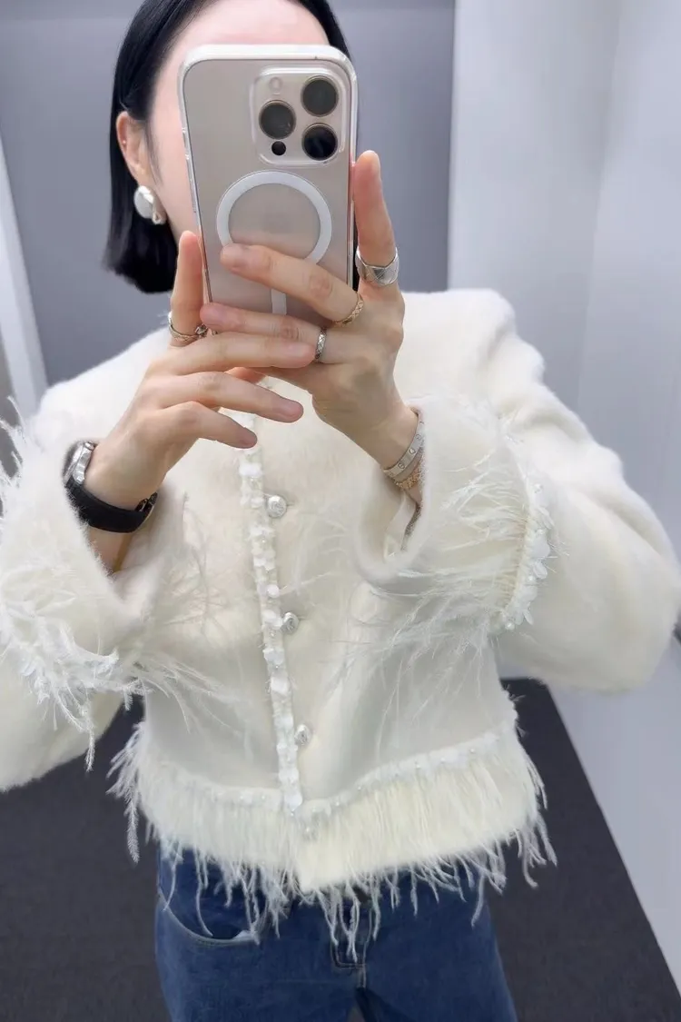 高級!拼羽毛亮片毛感外套