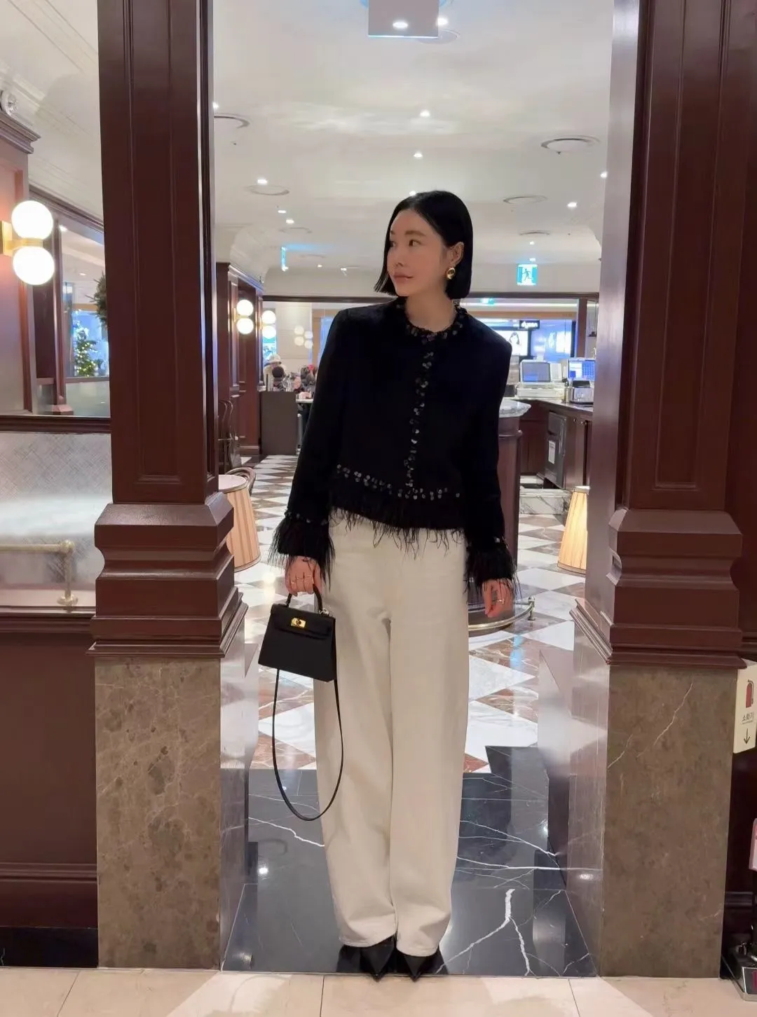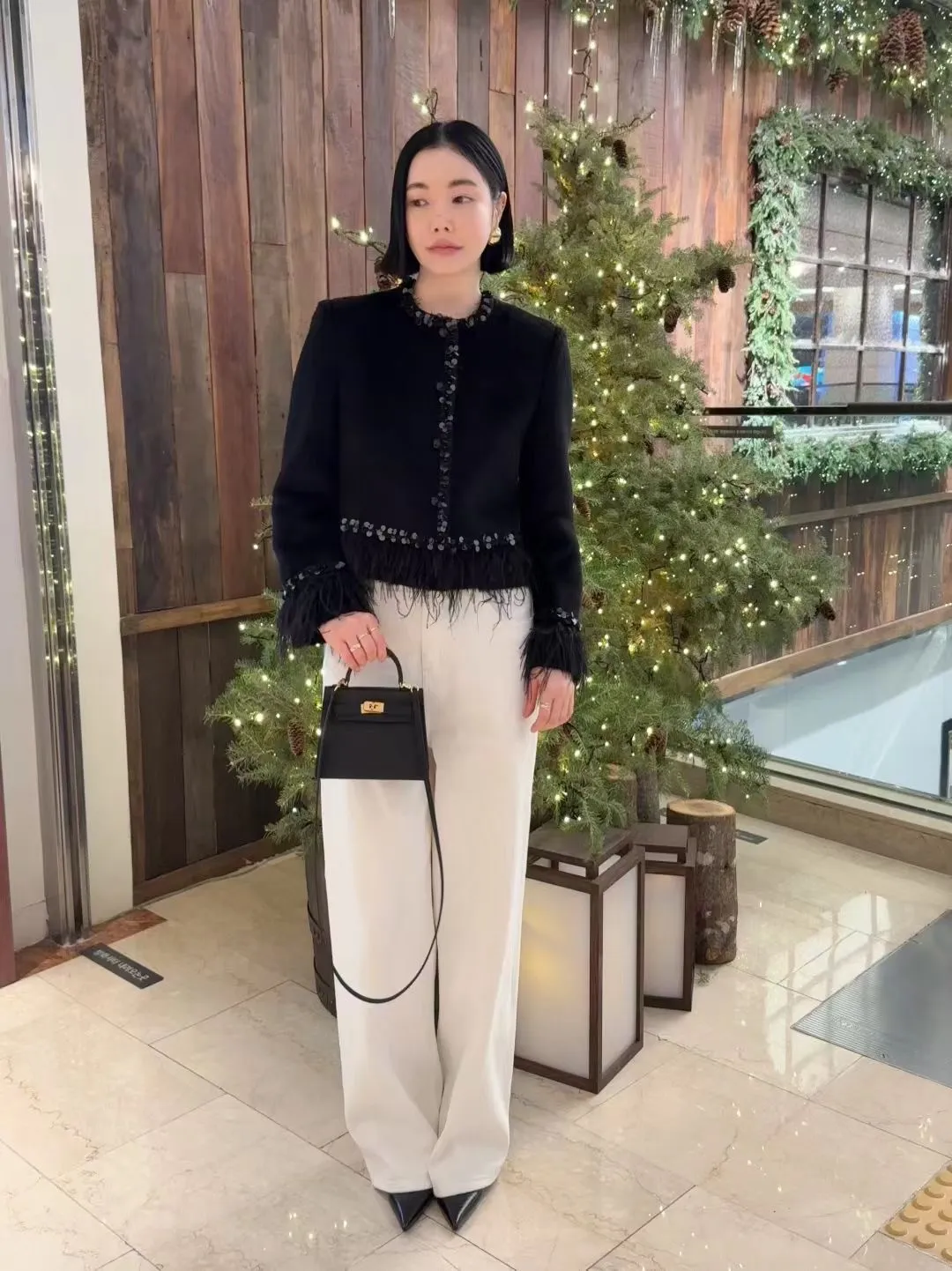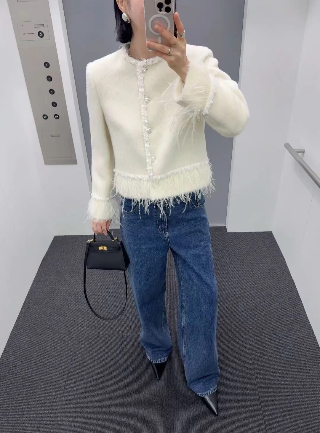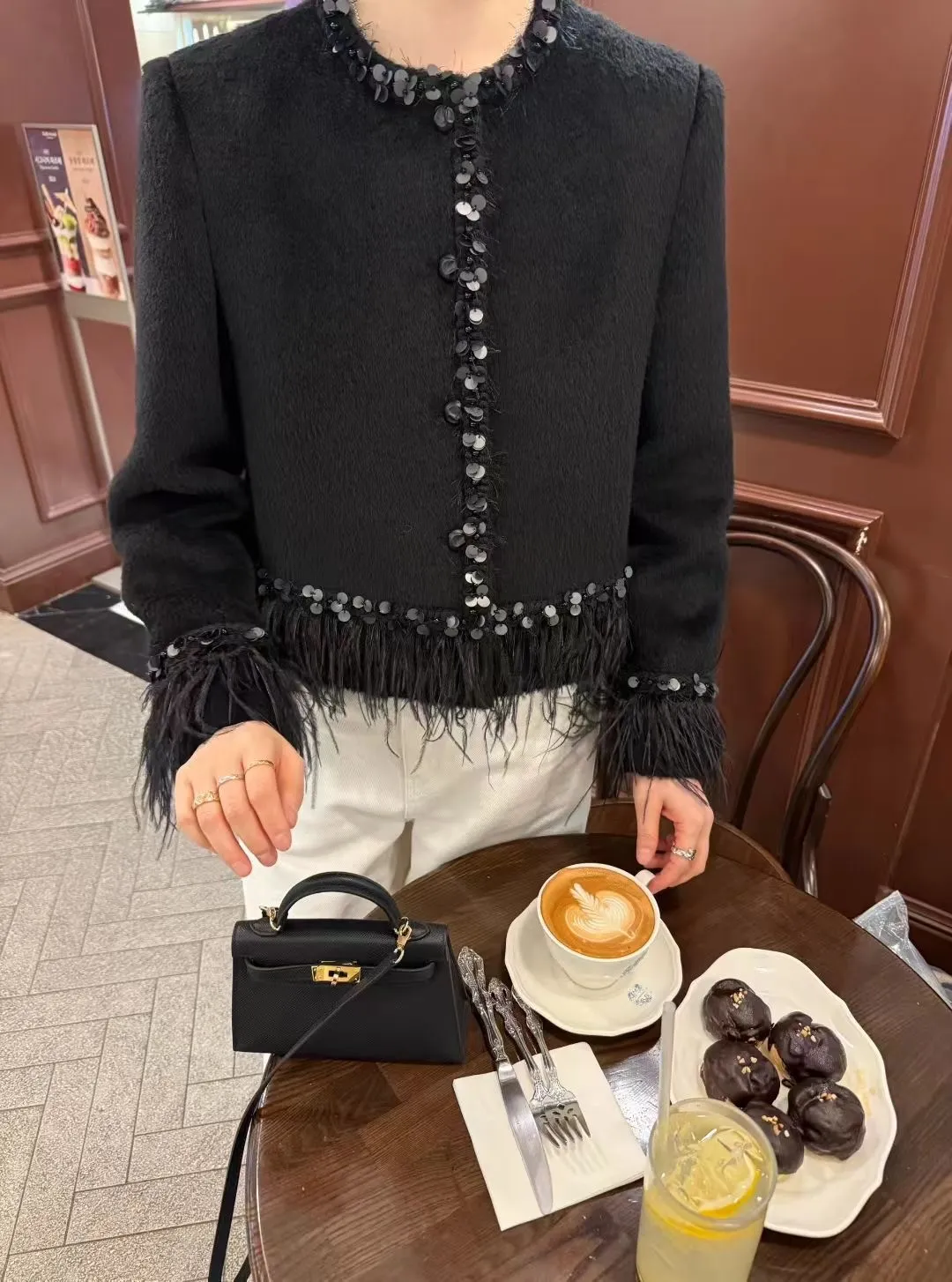 高級!拼羽毛亮片毛感外套