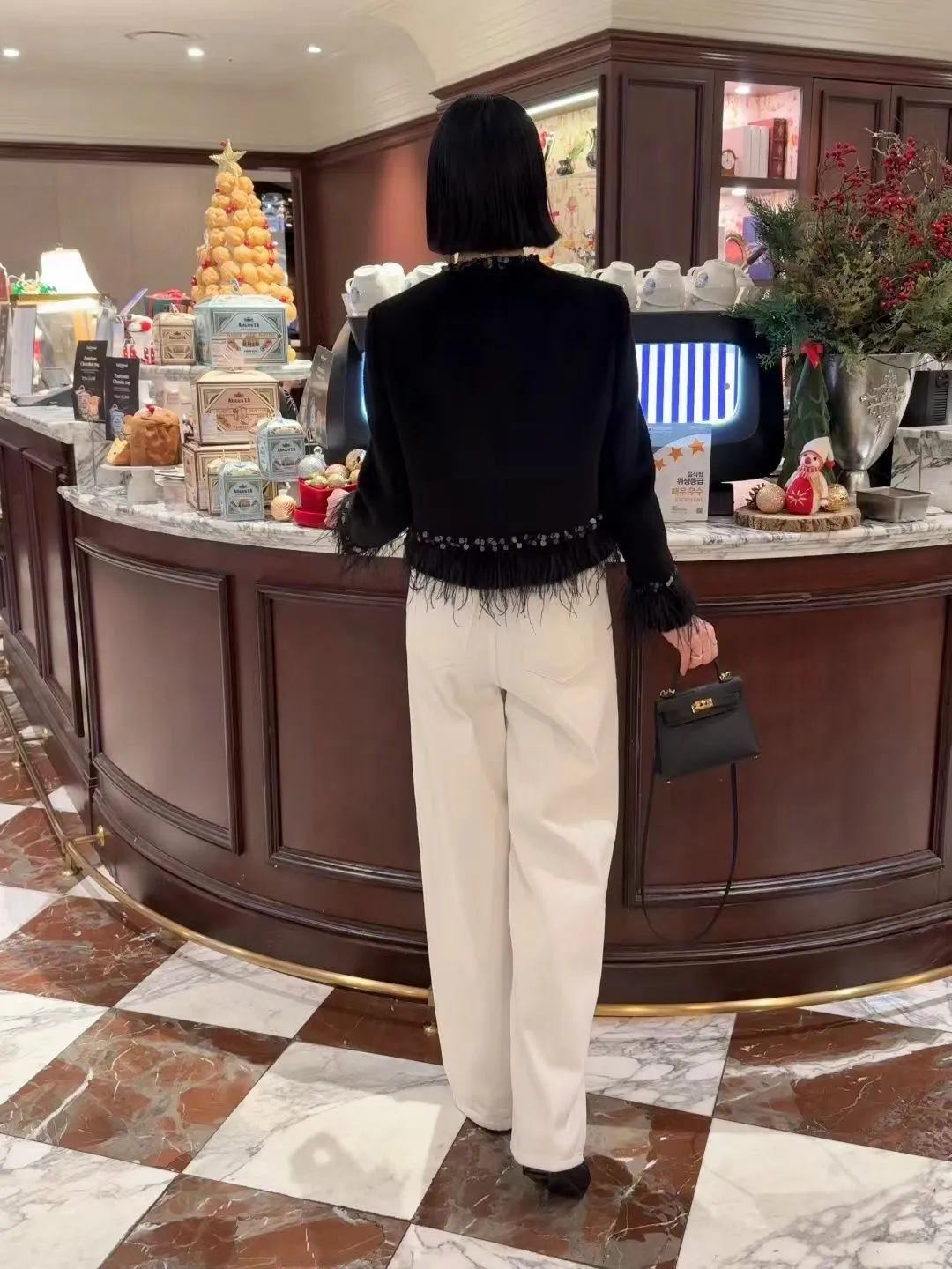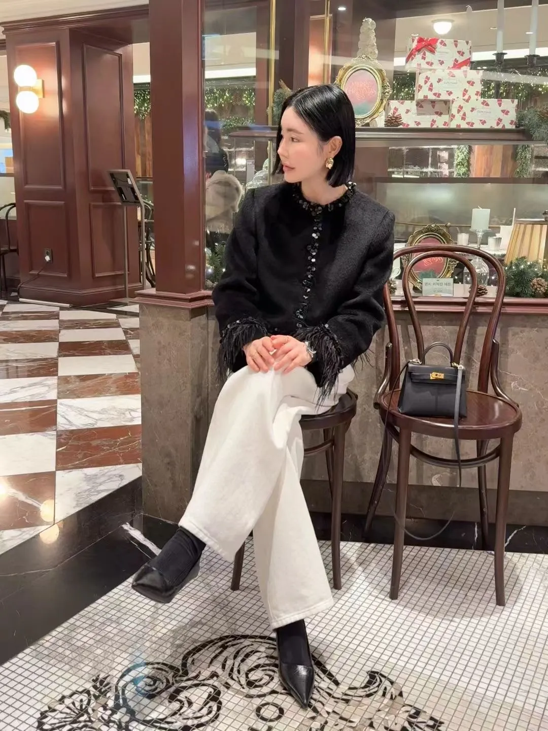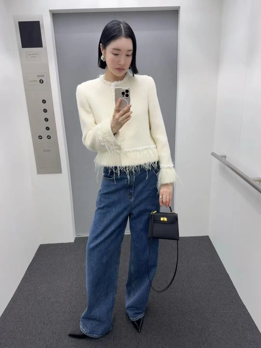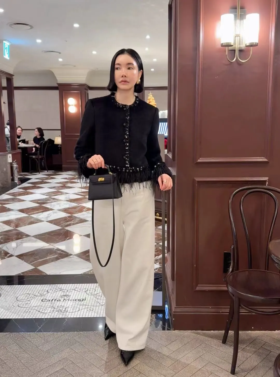 高級!拼羽毛亮片毛感外套
