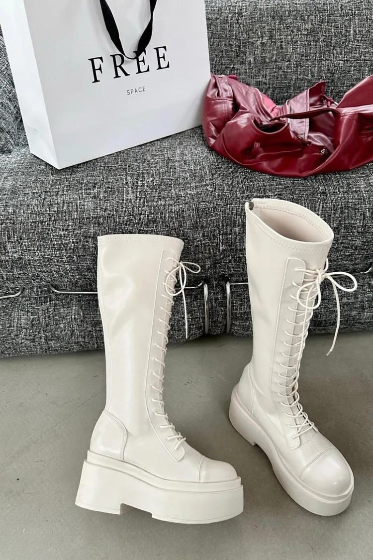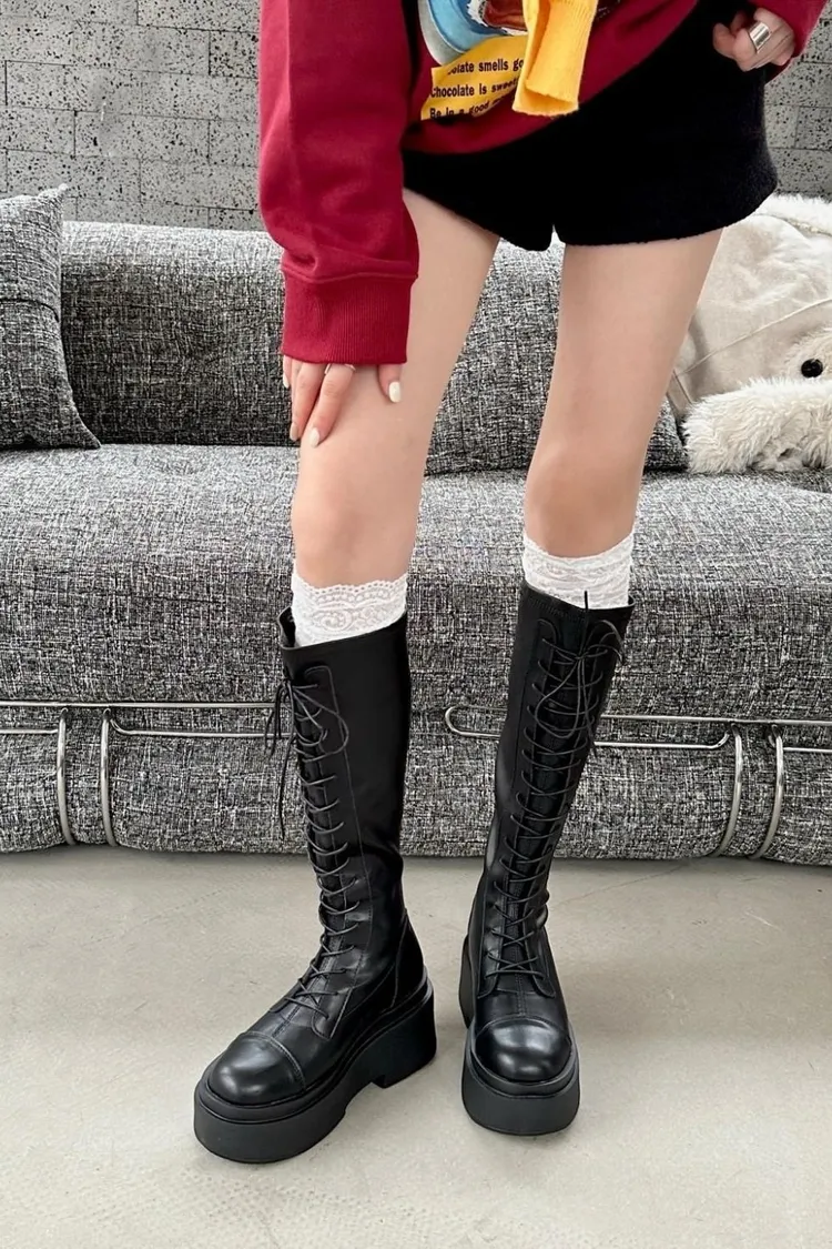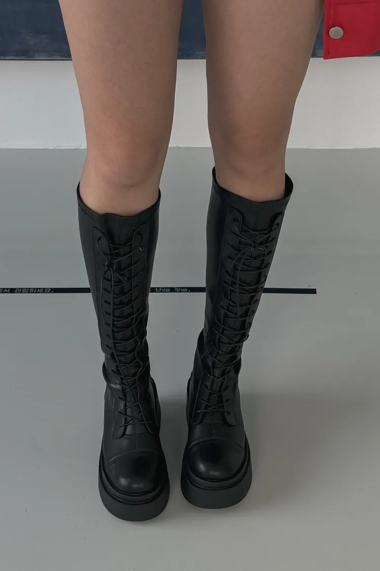 厚底綁帶後拉鍊長靴(版正常)有加大尺寸
