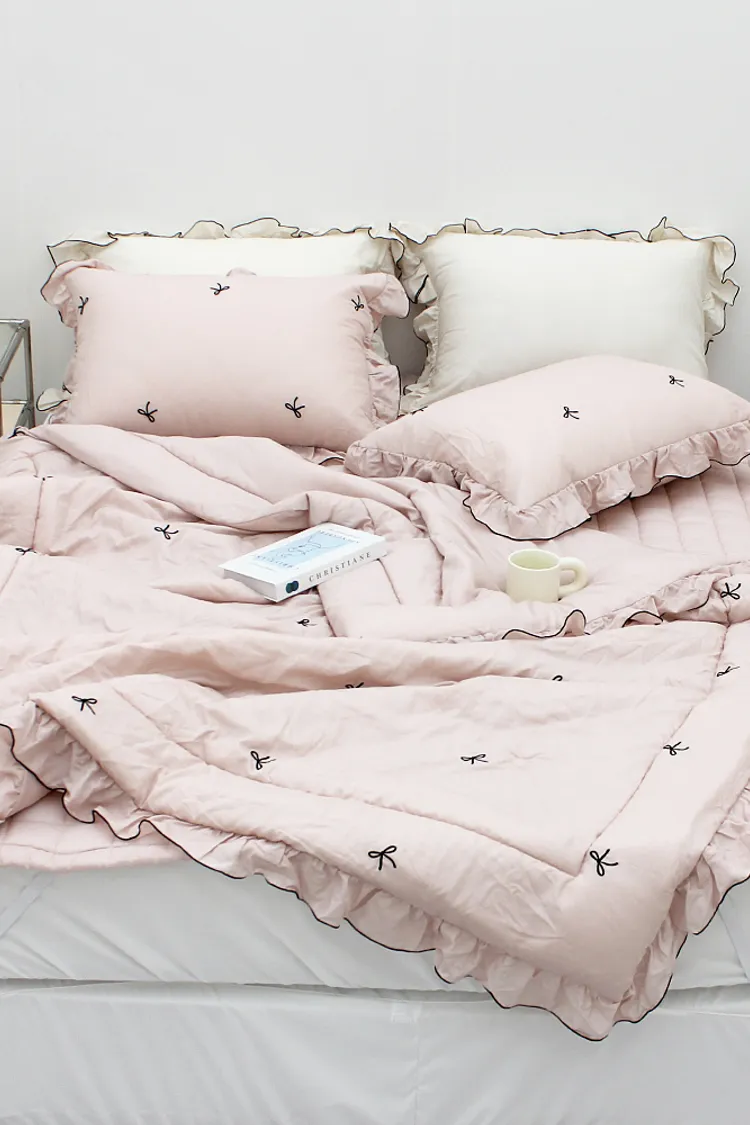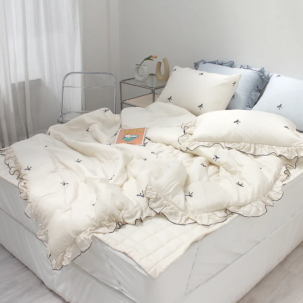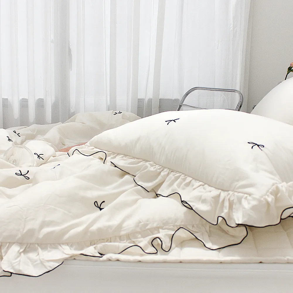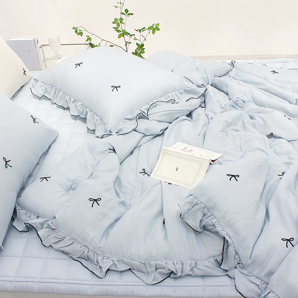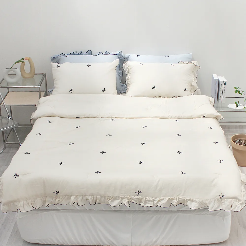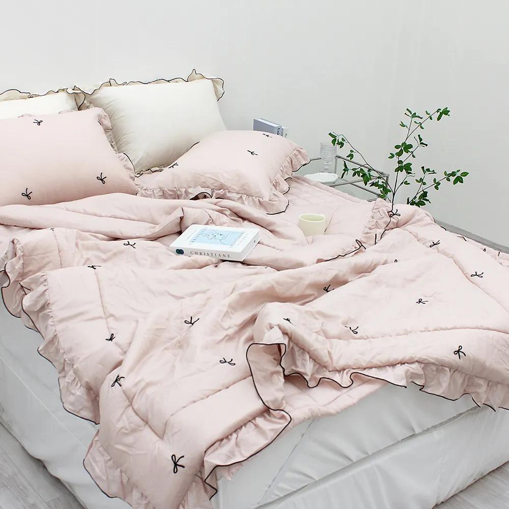 法式花邊刺繡蝴蝶結莫代爾四季被