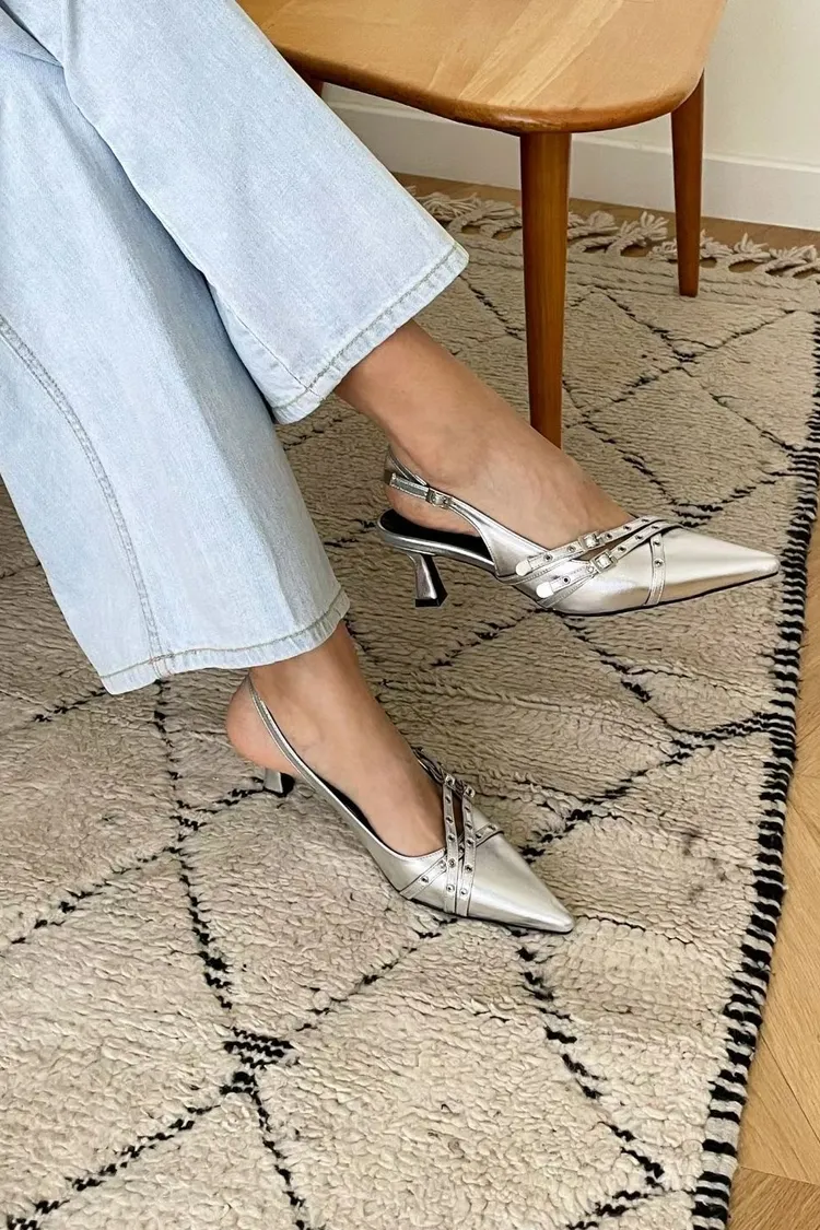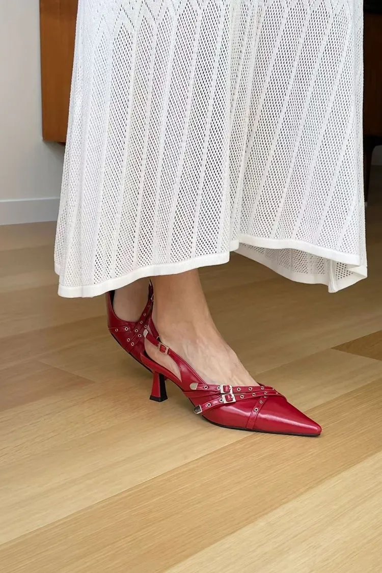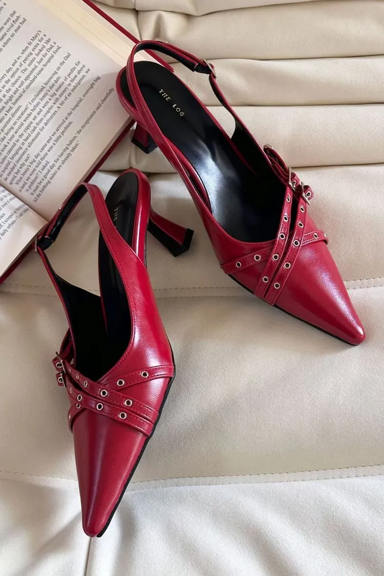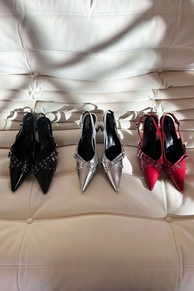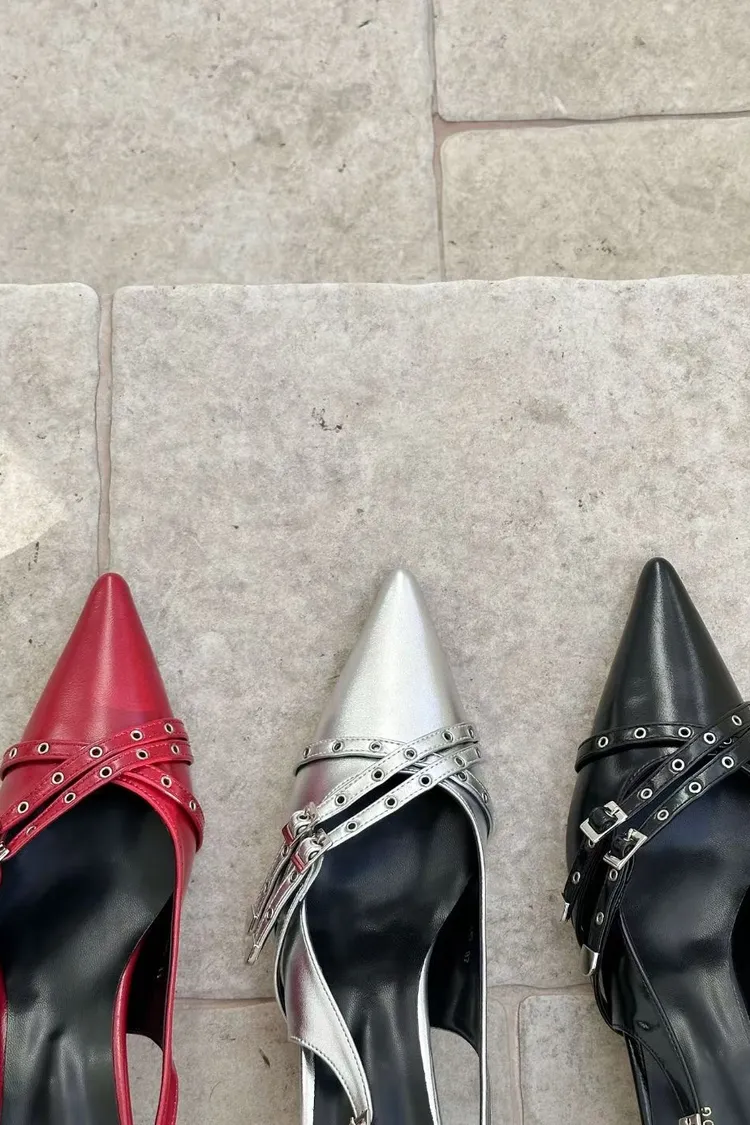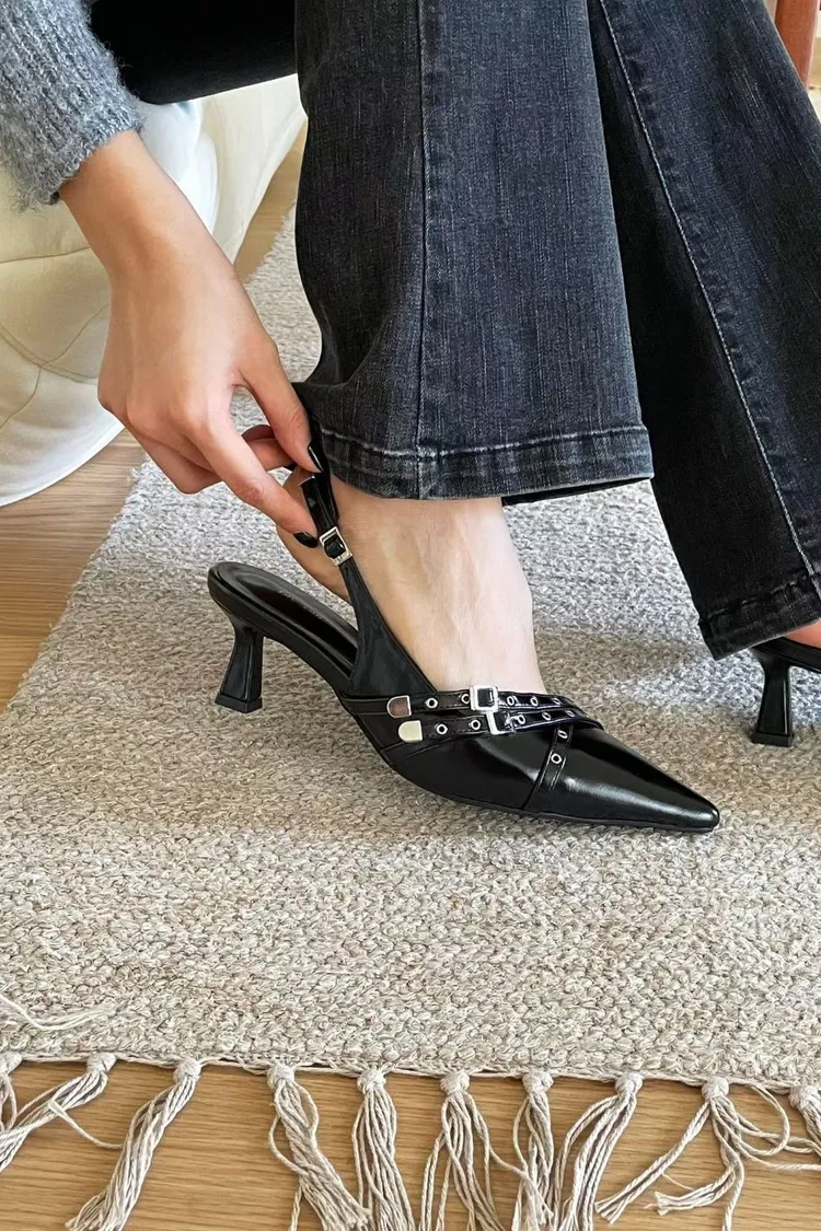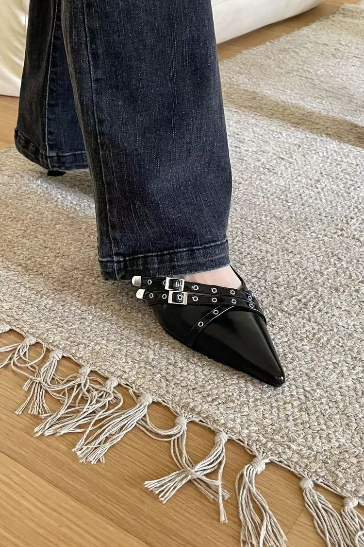 雙交叉皮帶尖頭跟鞋(版偏小)