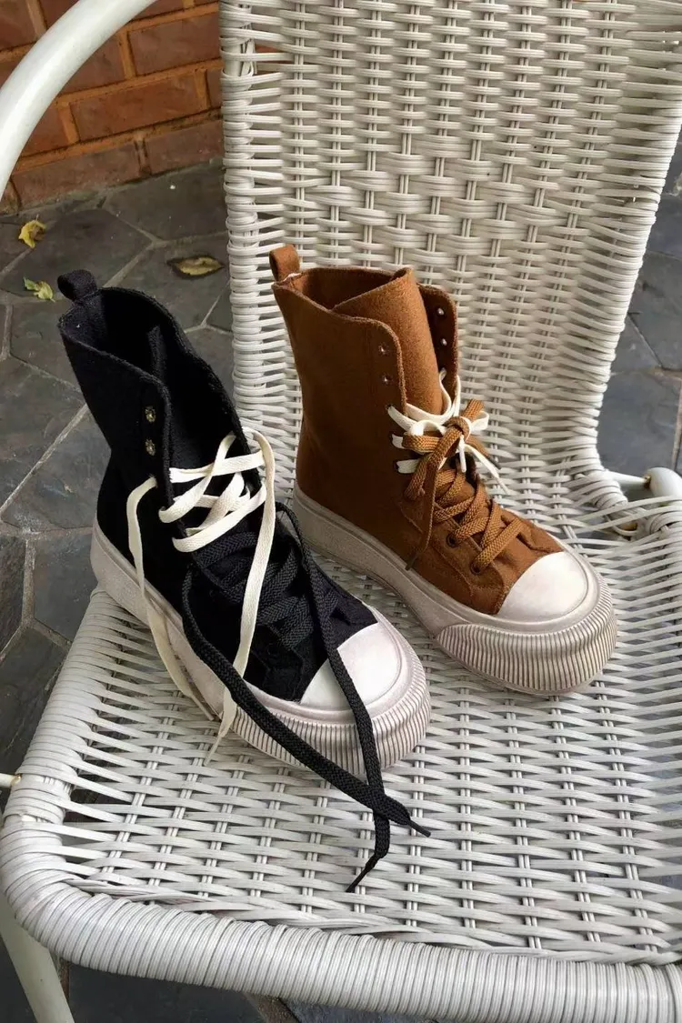 髒髒厚底雙鞋帶高筒布鞋(版正常)