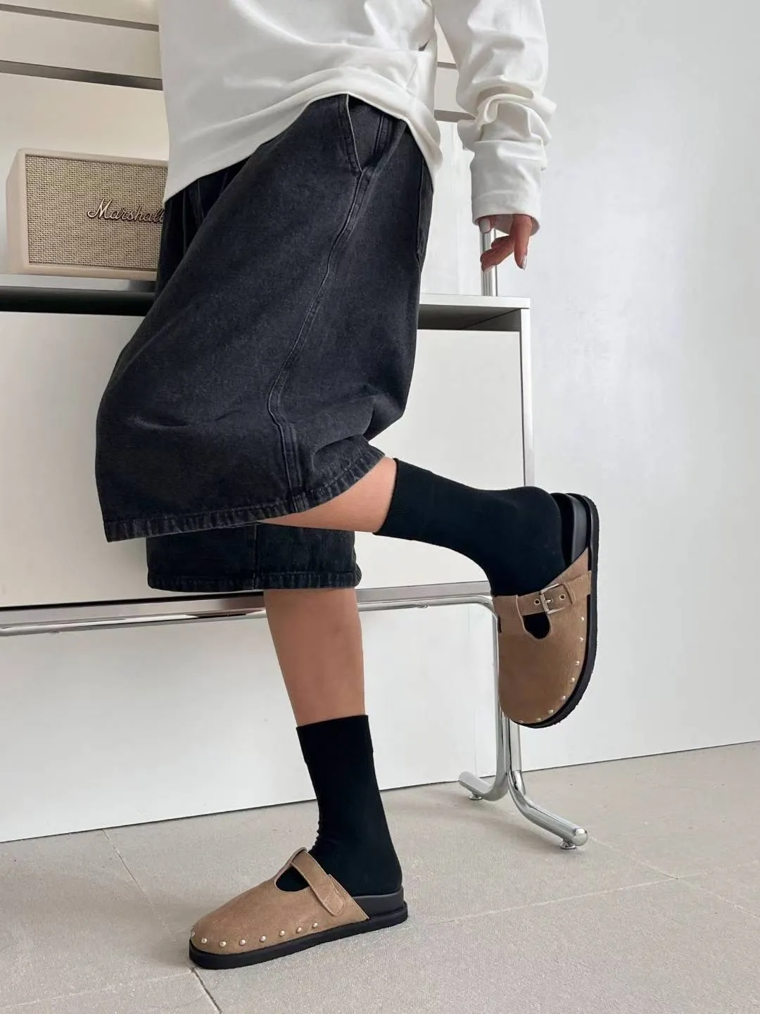 真皮!釘珠包頭勃肯鞋(版偏小 底高3.5)