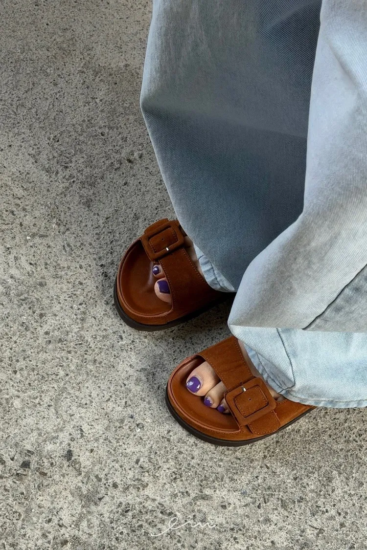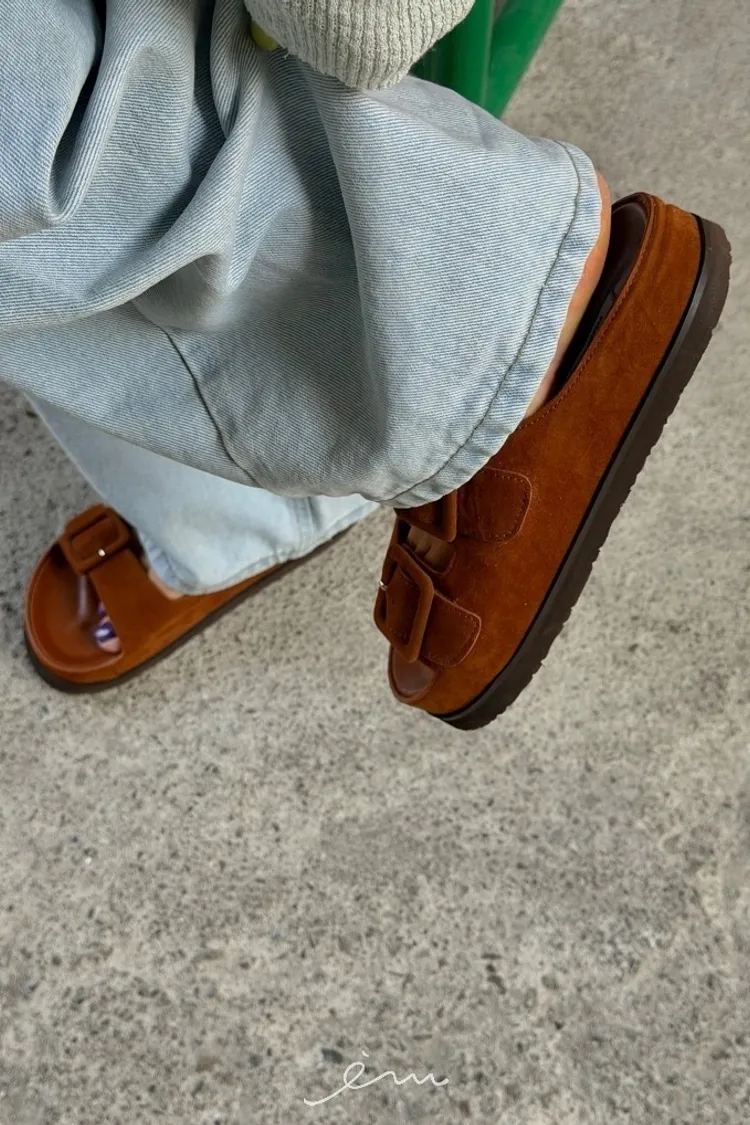 TOP麂皮釦環勃肯拖鞋