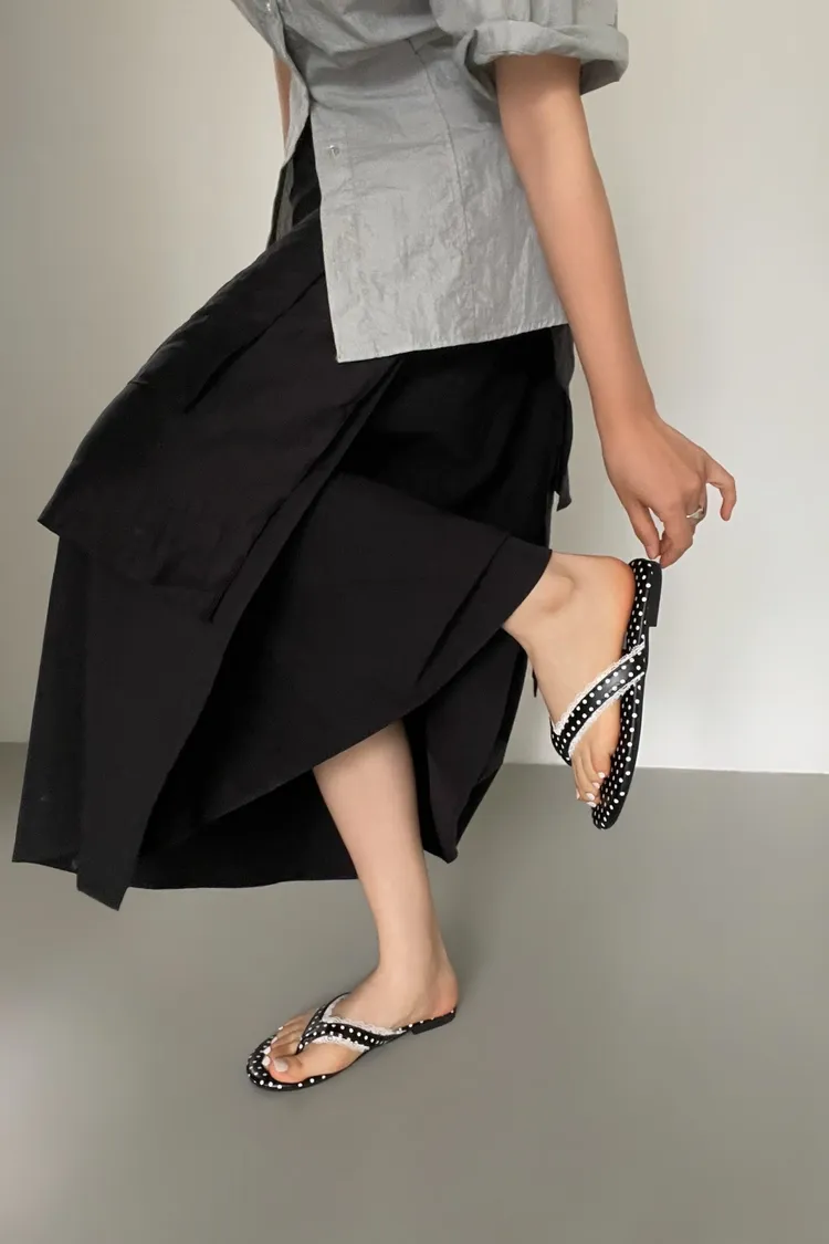 點點邊蕾絲人字拖鞋(版正常)
